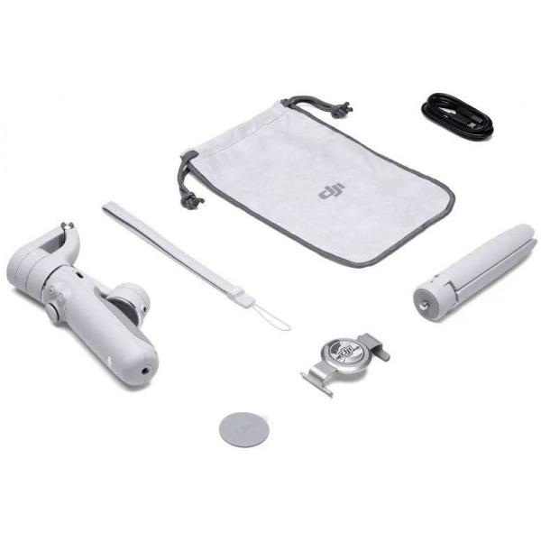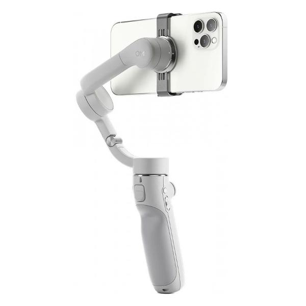 Стабилизатор для смартфона DJI OM 5 белого цвета — модель белого цвета выполнена в корпусе из пластика. Прибор оборудован встроенным моноподом. Максимальная нагрузка на устройство составляет 0,29 кг. Встроена функция вращения на 360°. Вес составляет 0,8 кг. Габаритные размеры — 20х7х19 см.