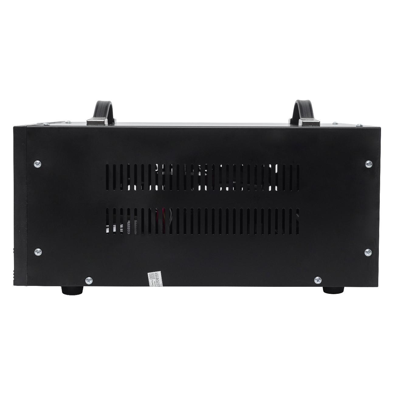 При перегрузке, скачке напряжения или повышении тепловой нагрузки происходит автоматическое выключение, что защищает двигатель от перегрева и поломки. В верхней части металлического корпуса размещены ручки, упрощающие транспортировку. Максимальная мощность составляет 8000 Вт. Модель соответствует стандарту IP20, что исключает использование в условиях высокой влажности или запыленности. Параметры выводятся на цифровой дисплей. Размеры — 28х40х49 см. Вес — 21 кг.