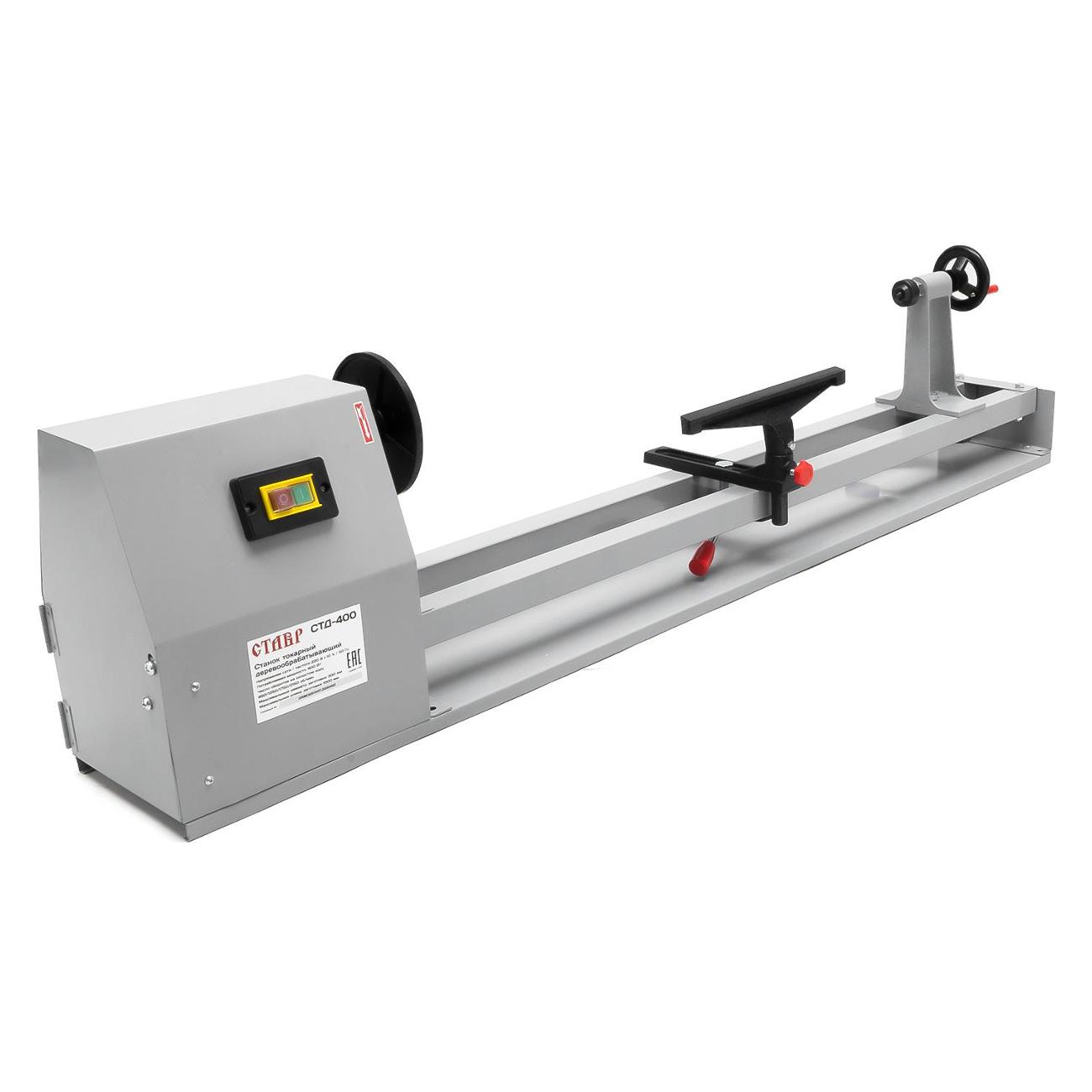 Станок токарный «Ставр» СТД-400 серого цвета обладает габаритами 35х24х140 см и весом 25 кг. Диаметр обработки составляет 30 мм, ширина — 100 см. Инструмент предназначен для работ по дереву. Корпус выполнен из металла. Станок оснащен асинхронным электродвигателем мощностью 400 Вт.