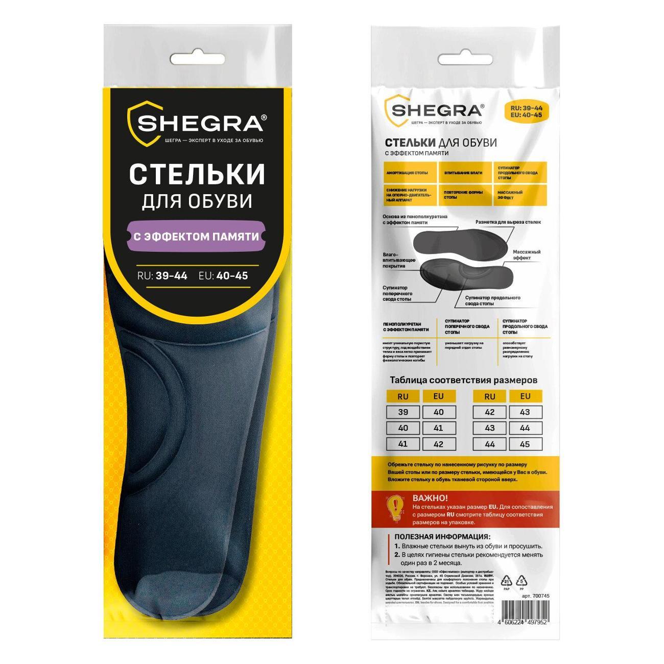 Вы можете купить Стельки SHEGRA Стельки д/обуви с эффектом памяти р39-44 в магазинах М.Видео по доступной цене. Стельки SHEGRA Стельки д/обуви с эффектом памяти р39-44: подробное описание, фото и отзывы реальных покупателей, характеристики, возможность скачать инструкции и подобрать аксессуары.