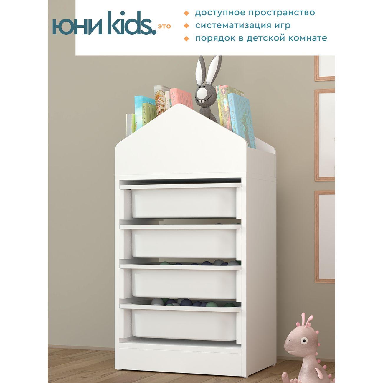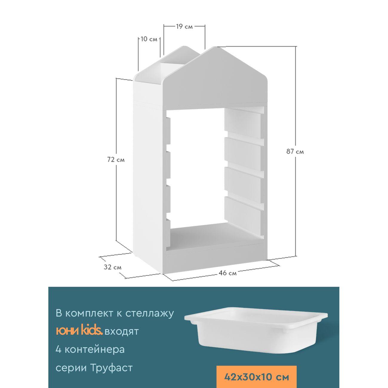 Белый стеллаж домик в детскую Юни Kids — это стильный и функциональный органайзер для игрушек и книг. Благодаря оригинальному дизайну в виде домика, он отлично вписывается в интерьер детской комнаты, создавая уютную атмосферу. Стеллаж детский имеет верхние отделения для хранения книг и удобные полки под контейнеры ТРУФАСТ (контейнеры приобретаются отдельно).