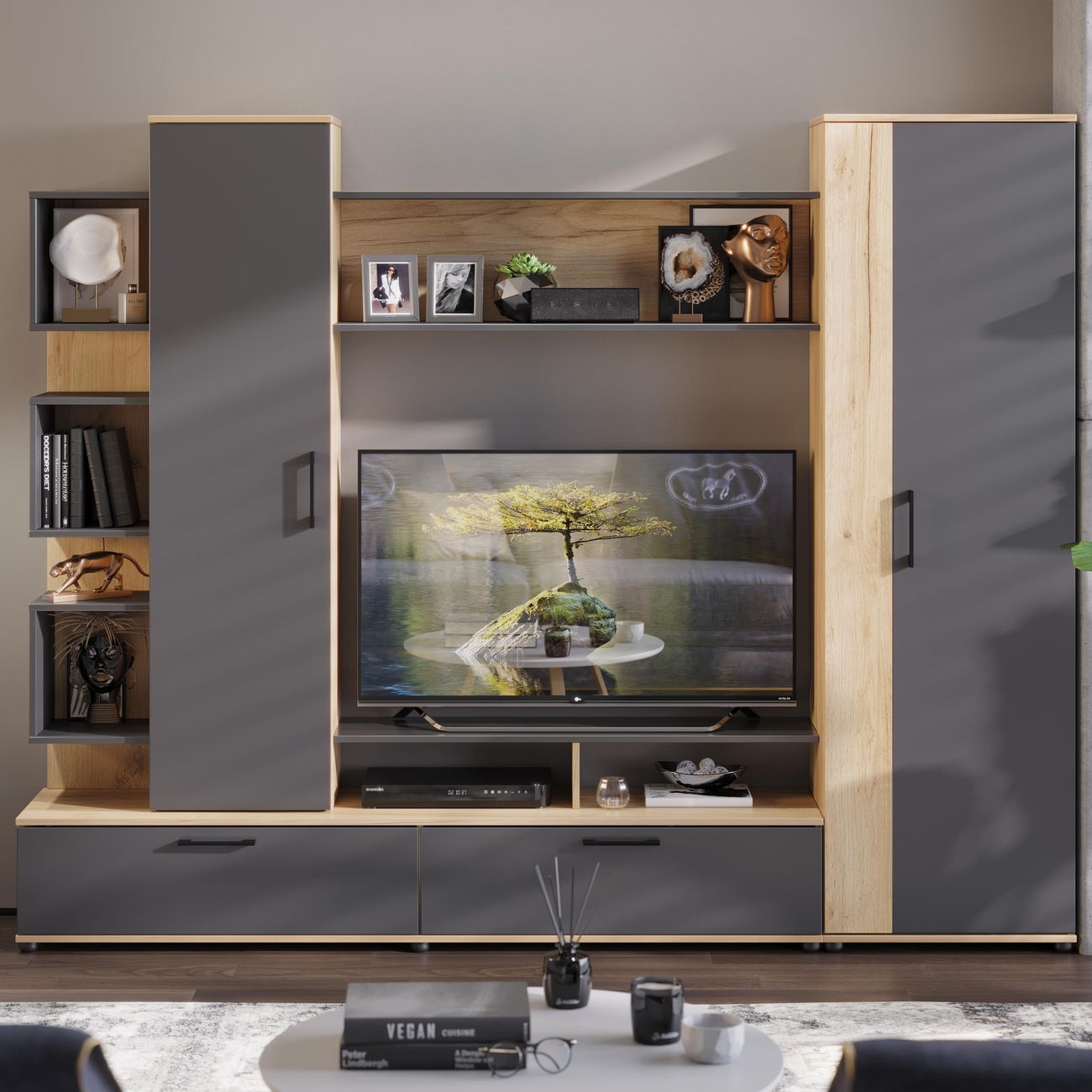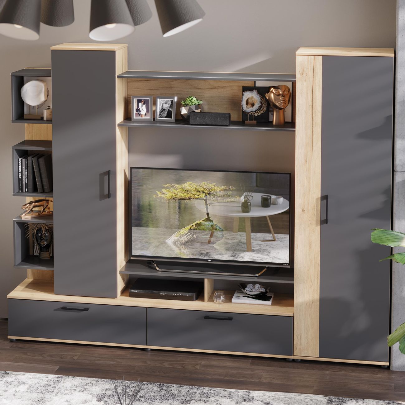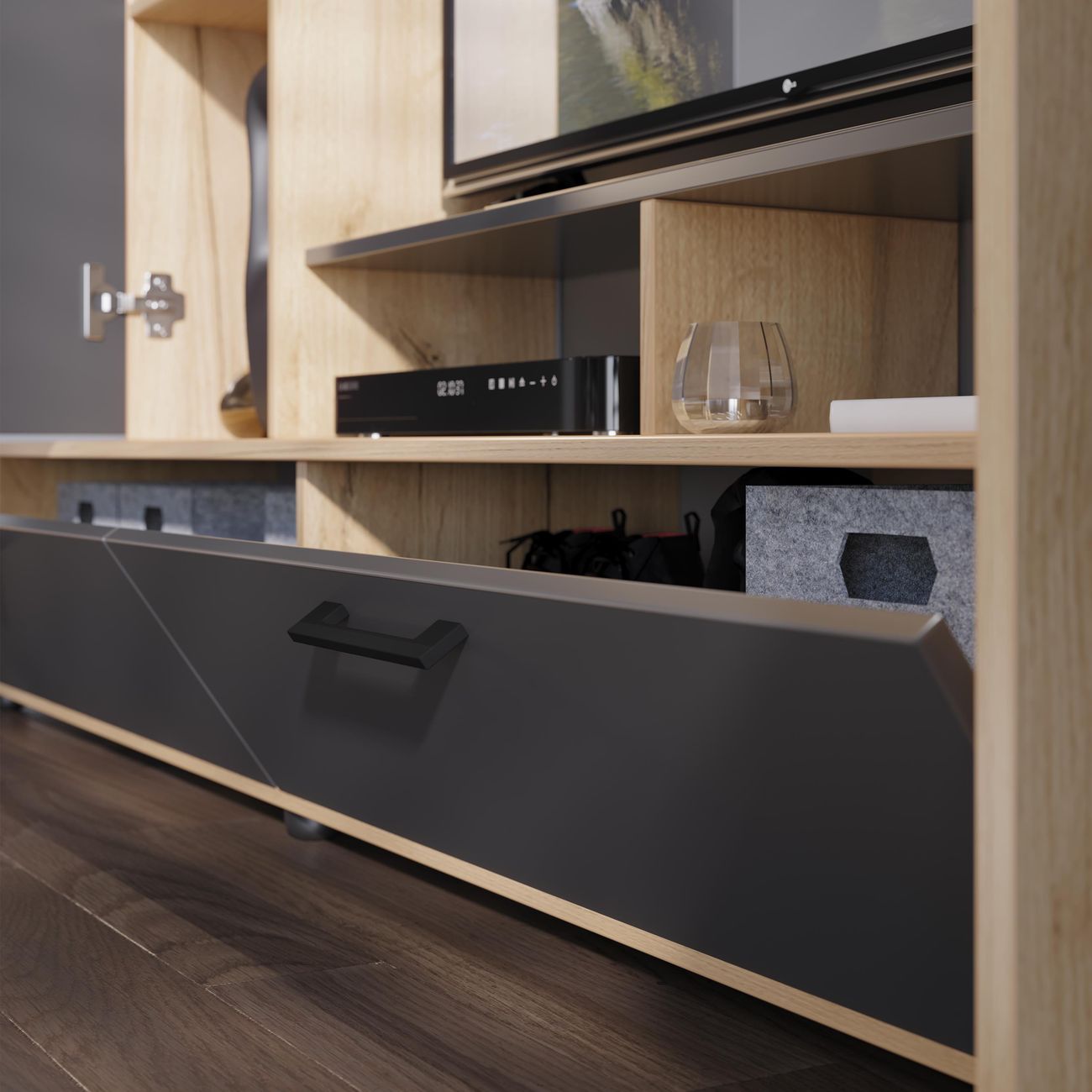Стенка под ТВ является вместительной и позволяет организовать и сохранить пространство гостиной. Качественные материалы делают набор мебели для гостиной износостойким, способным прослужить многие годы - используется высококачественный безопасный ЛДСП - 16 мм. Данная модель мебели представляет собой качественной продукцией и экологически чистым изделием.