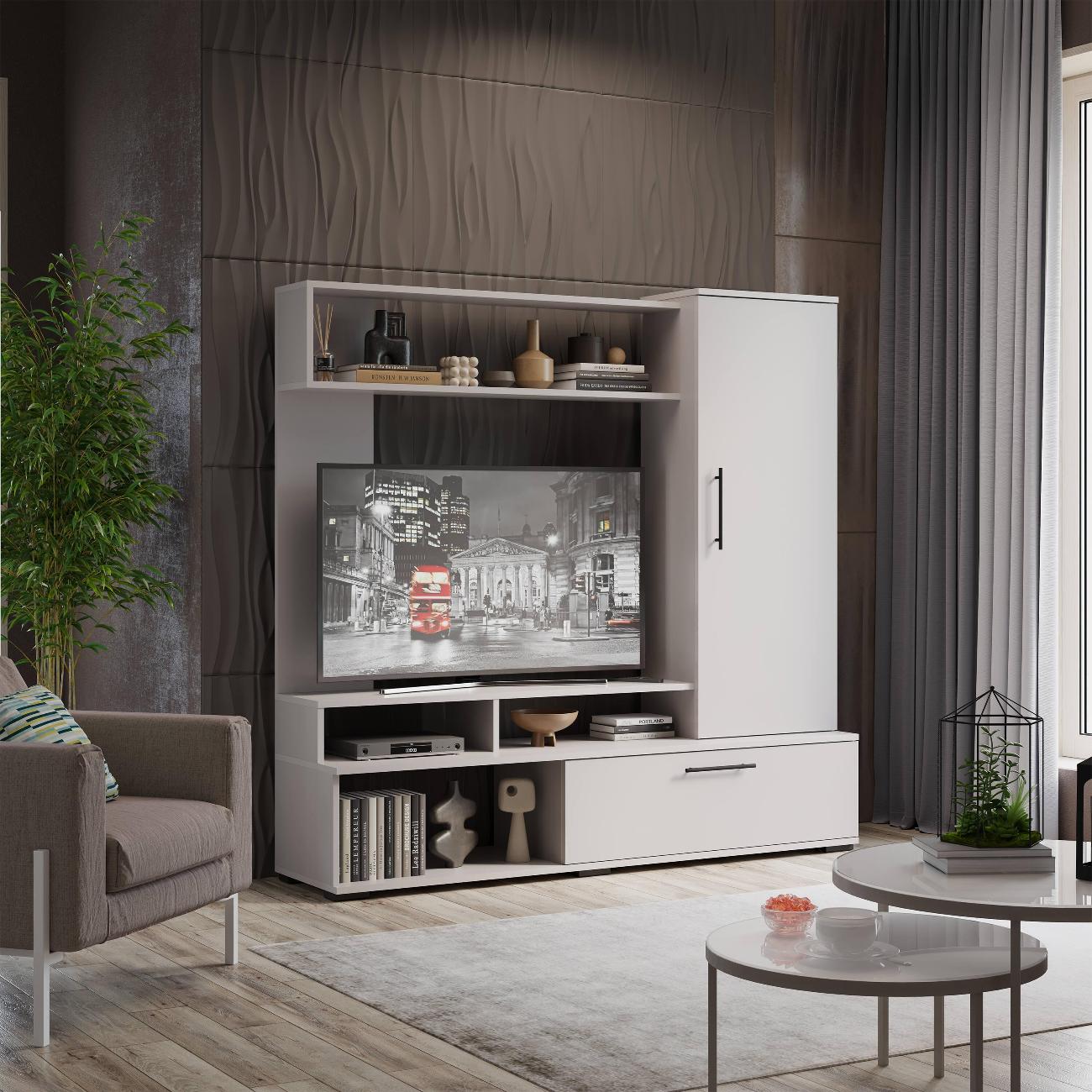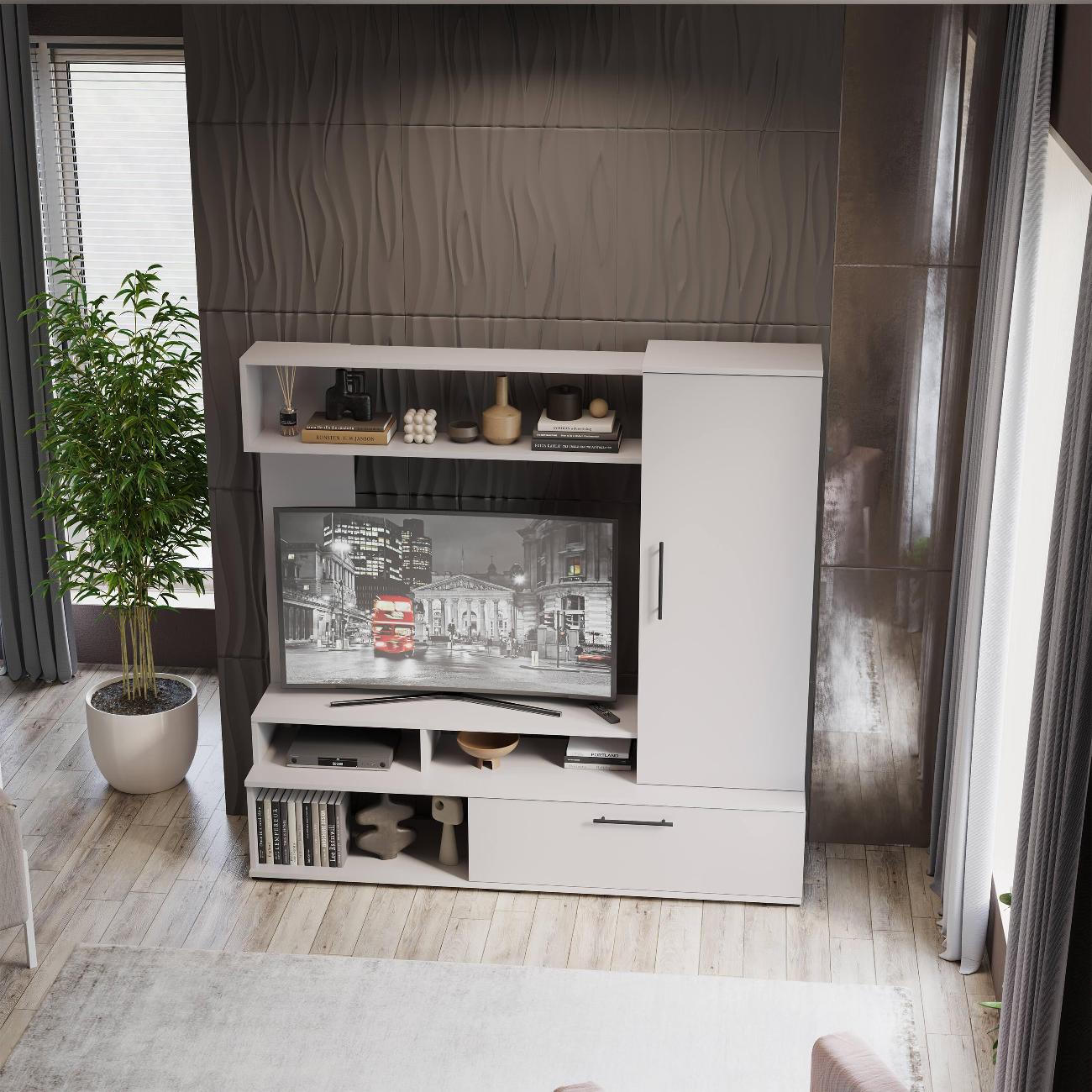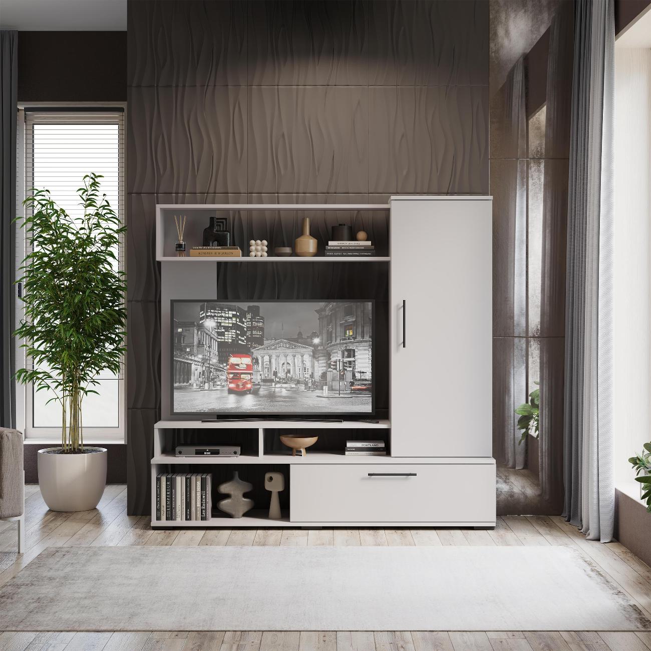 Гостиная Сиена - классический минималистичный дизайн, сбалансированная конструкция, доступная цена и разнообразие расцветок набора позволяют приобрести подходящую модель для помещения, оформленного в любом стиле. Отлично подойдет для малогабаритных квартир благодаря своим размерам - 150х36,4х146,4 см, что позволяет разместить телевизор с диагональю до 47 дюймов. Гостиная сочетает в себе простоту и элегантность и добавляет комфорт и уют комнате. В комплект входят такие элементы, как ящики, шкаф, полки - они обеспечивают дополнительное пространство для хранения книг, сувениров, посуды и других предметов. Места для хранения в наборе мебели для гостиной позволяют максимально эффективно использовать пространство и организовать хранение различных предметов. Качественные материалы ТВ-тумбы делают износостойкой, способной прослужить многие годы - используется высококачественный безопасный ЛДСП - 16 мм. Данная модель мебели представляет собой качественной продукцией и экологически чистым изделием. Дополнительная информация Поставляется в разобранном виде. Все технические отверстия сделаны на производстве, фурнитура для сборки и инструкция идет в комплекте, также инструкцию Вы можете найти в карточке товара. Прежде чем приступить к сборке, необходимо убедиться в качестве, количестве и соответствии всех деталей. Если таковые выявлены, незамедлительно свяжитесь с площадкой и продавцом, для разрешения вопроса, не приступая к сбору изделия.