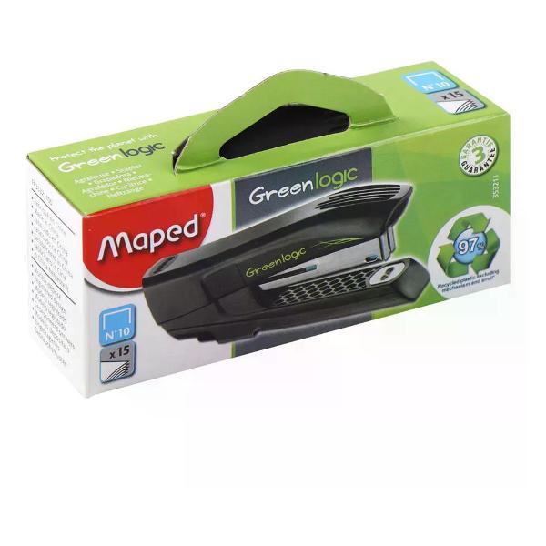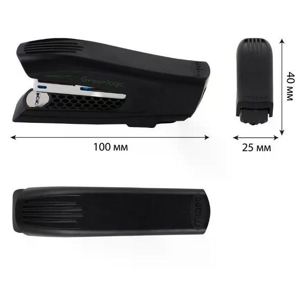 Степлер канцелярский незаменимый инструмент в офисе, учебном заведении и дома, который обеспечивает надежное скрепление документов, заметок и других бумажных материалов. Его компактный и эргономичный дизайн позволяет легко использовать степлер одной рукой, что делает его удобным в процессе работы. Современные модели степлеров могут скреплять до нескольких десятков листов за один раз, что значительно ускоряет выполнение задач, связанных с документацией. В нашем магазине доступны различные варианты степлеров. Кроме того, различные цвета и дизайны степлеров позволяют выбрать той, который лучше всего впишется в стиль рабочего пространства или станет ярким акцентом на столе. Степлер является не только практичным, но и эстетическим аксессуаром, который подчеркивает вашу организованность и заботу о деталях. Такой инструмент гарантирует, что важные документы всегда будут в порядке и готовыми к использованию, что особенно актуально в условиях динамичного рабочего процесса. Будь то небольшие заметки, отчеты или проекты, степлер станет верным помощником в создании аккуратного и структурированного документационного потока.Степлер, №10, 15 листов, мини, корпус пластиковый, антистеплер, цвет черный, Greenlogic, Maped, 353211. Торговая марка: Maped; Страна: Китай; Упаковка: 20/160/4480; Сертификат: 2207. Вместимость скоб: 88 шт №10, глубина сшивки: 43 мм. Сделан на 97% из переработанного пластика