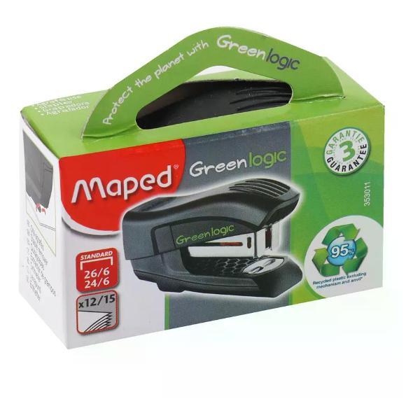Степлер канцелярский незаменимый инструмент в офисе, учебном заведении и дома, который обеспечивает надежное скрепление документов, заметок и других бумажных материалов. Его компактный и эргономичный дизайн позволяет легко использовать степлер одной рукой, что делает его удобным в процессе работы. Современные модели степлеров могут скреплять до нескольких десятков листов за один раз, что значительно ускоряет выполнение задач, связанных с документацией. В нашем магазине доступны различные варианты степлеров. Кроме того, различные цвета и дизайны степлеров позволяют выбрать той, который лучше всего впишется в стиль рабочего пространства или станет ярким акцентом на столе. Степлер является не только практичным, но и эстетическим аксессуаром, который подчеркивает вашу организованность и заботу о деталях. Такой инструмент гарантирует, что важные документы всегда будут в порядке и готовыми к использованию, что особенно актуально в условиях динамичного рабочего процесса. Будь то небольшие заметки, отчеты или проекты, степлер станет верным помощником в создании аккуратного и структурированного документационного потока.Степлер, №24/6, 15 листов, мини, корпус пластиковый, антистеплер, цвет черный, Maped, Reenlogic, 353011. Торговая марка: Maped; Страна: Китай; Упаковка: 20/320/7680; Сертификат: 2207.