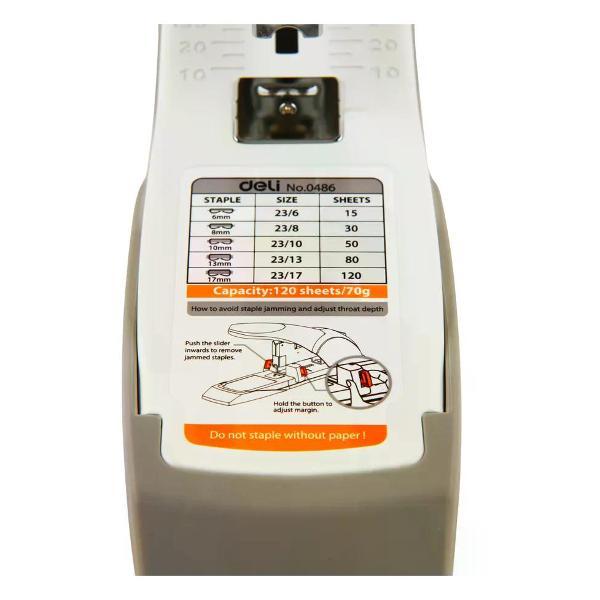 Степлер канцелярский незаменимый инструмент в офисе, учебном заведении и дома, который обеспечивает надежное скрепление документов, заметок и других бумажных материалов. Его компактный и эргономичный дизайн позволяет легко использовать степлер одной рукой, что делает его удобным в процессе работы. Современные модели степлеров могут скреплять до нескольких десятков листов за один раз, что значительно ускоряет выполнение задач, связанных с документацией. В нашем магазине доступны различные варианты степлеров. Кроме того, различные цвета и дизайны степлеров позволяют выбрать той, который лучше всего впишется в стиль рабочего пространства или станет ярким акцентом на столе. Степлер является не только практичным, но и эстетическим аксессуаром, который подчеркивает вашу организованность и заботу о деталях. Такой инструмент гарантирует, что важные документы всегда будут в порядке и готовыми к использованию, что особенно актуально в условиях динамичного рабочего процесса. Будь то небольшие заметки, отчеты или проекты, степлер станет верным помощником в создании аккуратного и структурированного документационного потока.Степлер, №23/6-№23/17, корпус металлический, 120 листов, резиновые вставки, энергосберегающий, Deli, E0486. Торговая марка: Deli; Страна: Китай; Упаковка: 12; Сертификат: 2891. Тип и размер используемых скоб: №23/6, №23/8, №23/10, №23/13, №23/17.