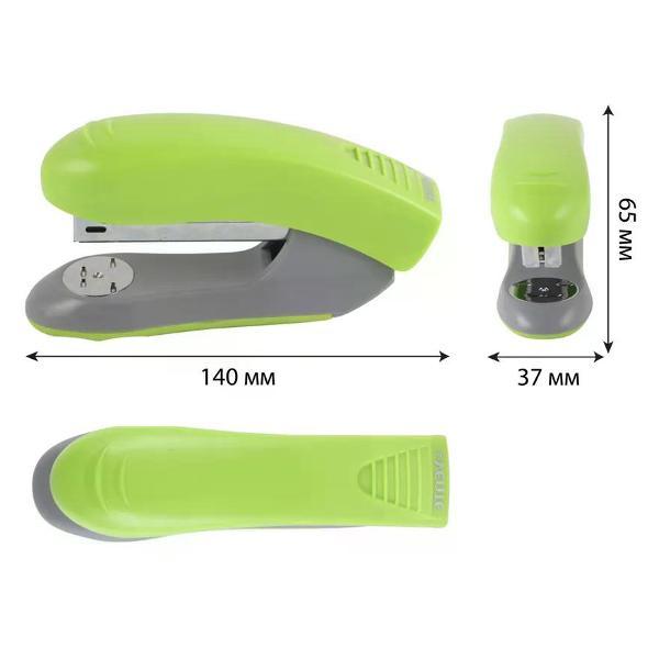Степлер канцелярский незаменимый инструмент в офисе, учебном заведении и дома, который обеспечивает надежное скрепление документов, заметок и других бумажных материалов. Его компактный и эргономичный дизайн позволяет легко использовать степлер одной рукой, что делает его удобным в процессе работы. Современные модели степлеров могут скреплять до нескольких десятков листов за один раз, что значительно ускоряет выполнение задач, связанных с документацией. В нашем магазине доступны различные варианты степлеров. Кроме того, различные цвета и дизайны степлеров позволяют выбрать той, который лучше всего впишется в стиль рабочего пространства или станет ярким акцентом на столе. Степлер является не только практичным, но и эстетическим аксессуаром, который подчеркивает вашу организованность и заботу о деталях. Такой инструмент гарантирует, что важные документы всегда будут в порядке и готовыми к использованию, что особенно актуально в условиях динамичного рабочего процесса. Будь то небольшие заметки, отчеты или проекты, степлер станет верным помощником в создании аккуратного и структурированного документационного потока.Степлер, №24/6, 20 листов, корпус пластиковый, цвет зеленый, Everfine, 4142339. Торговая марка: Everfine; Страна: Китай; Упаковка: 12/24; Сертификат: 2063. Имеет два режима скрепления: постоянное и временное