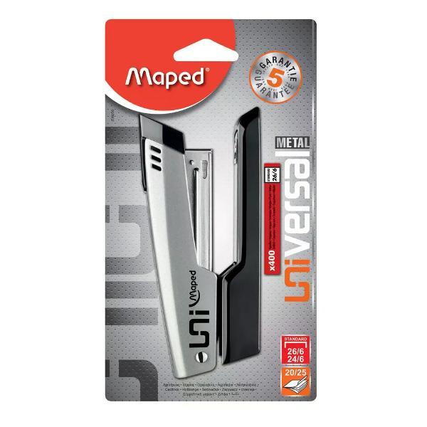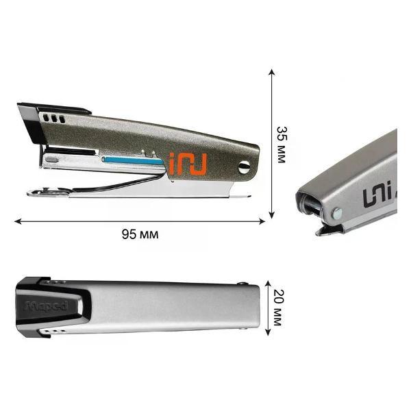 Степлер канцелярский незаменимый инструмент в офисе, учебном заведении и дома, который обеспечивает надежное скрепление документов, заметок и других бумажных материалов. Его компактный и эргономичный дизайн позволяет легко использовать степлер одной рукой, что делает его удобным в процессе работы. Современные модели степлеров могут скреплять до нескольких десятков листов за один раз, что значительно ускоряет выполнение задач, связанных с документацией. В нашем магазине доступны различные варианты степлеров. Кроме того, различные цвета и дизайны степлеров позволяют выбрать той, который лучше всего впишется в стиль рабочего пространства или станет ярким акцентом на столе. Степлер является не только практичным, но и эстетическим аксессуаром, который подчеркивает вашу организованность и заботу о деталях. Такой инструмент гарантирует, что важные документы всегда будут в порядке и готовыми к использованию, что особенно актуально в условиях динамичного рабочего процесса. Будь то небольшие заметки, отчеты или проекты, степлер станет верным помощником в создании аккуратного и структурированного документационного потока.Степлер, №10, 12 листов, корпус металлический, антистеплер, цвет серый, Maped, Universal Metal, 043500. Торговая марка: Maped; Страна: Китай; Упаковка: 20/120/1440; Сертификат: 2207.