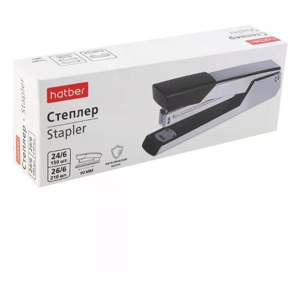 Степлер канцелярский незаменимый инструмент в офисе, учебном заведении и дома, который обеспечивает надежное скрепление документов, заметок и других бумажных материалов. Его компактный и эргономичный дизайн позволяет легко использовать степлер одной рукой, что делает его удобным в процессе работы. Современные модели степлеров могут скреплять до нескольких десятков листов за один раз, что значительно ускоряет выполнение задач, связанных с документацией. В нашем магазине доступны различные варианты степлеров. Кроме того, различные цвета и дизайны степлеров позволяют выбрать той, который лучше всего впишется в стиль рабочего пространства или станет ярким акцентом на столе. Степлер является не только практичным, но и эстетическим аксессуаром, который подчеркивает вашу организованность и заботу о деталях. Такой инструмент гарантирует, что важные документы всегда будут в порядке и готовыми к использованию, что особенно актуально в условиях динамичного рабочего процесса. Будь то небольшие заметки, отчеты или проекты, степлер станет верным помощником в создании аккуратного и структурированного документационного потока.Степлер, №24/6, №26/6, 25 листов, корпус металлический, цвет черный, Hatber, Technic, DS_085947. Торговая марка: Hatber; Страна: Китай; Упаковка: 12/48.