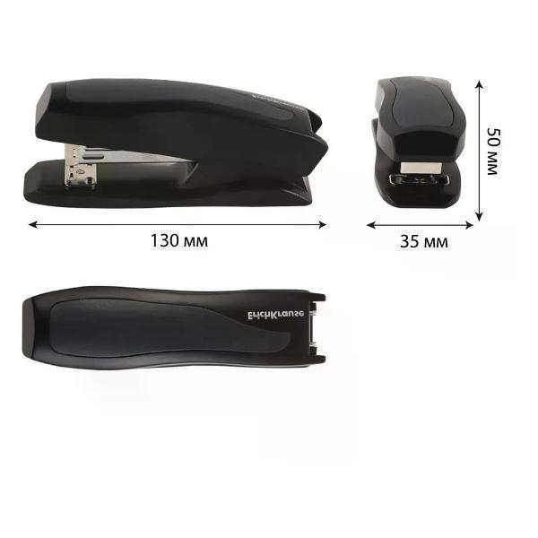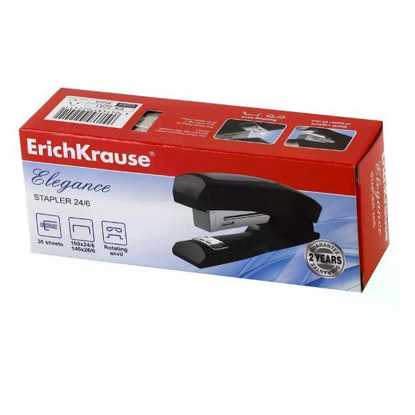 Степлер канцелярский незаменимый инструмент в офисе, учебном заведении и дома, который обеспечивает надежное скрепление документов, заметок и других бумажных материалов. Его компактный и эргономичный дизайн позволяет легко использовать степлер одной рукой, что делает его удобным в процессе работы. Современные модели степлеров могут скреплять до нескольких десятков листов за один раз, что значительно ускоряет выполнение задач, связанных с документацией. В нашем магазине доступны различные варианты степлеров. Кроме того, различные цвета и дизайны степлеров позволяют выбрать той, который лучше всего впишется в стиль рабочего пространства или станет ярким акцентом на столе. Степлер является не только практичным, но и эстетическим аксессуаром, который подчеркивает вашу организованность и заботу о деталях. Такой инструмент гарантирует, что важные документы всегда будут в порядке и готовыми к использованию, что особенно актуально в условиях динамичного рабочего процесса. Будь то небольшие заметки, отчеты или проекты, степлер станет верным помощником в создании аккуратного и структурированного документационного потока.Степлер, №24/6, №26/6, 30 листов, корпус пластиковый, резиновые вставки, цвет черный, Erich Krause, 2241. Торговая марка: Erich Krause; Страна: Китай; Упаковка: 12/72. Вмещает до 100 скоб №24/6 и до 140 скоб №26/6. Имеет два режима скрепления: постоянное и временное