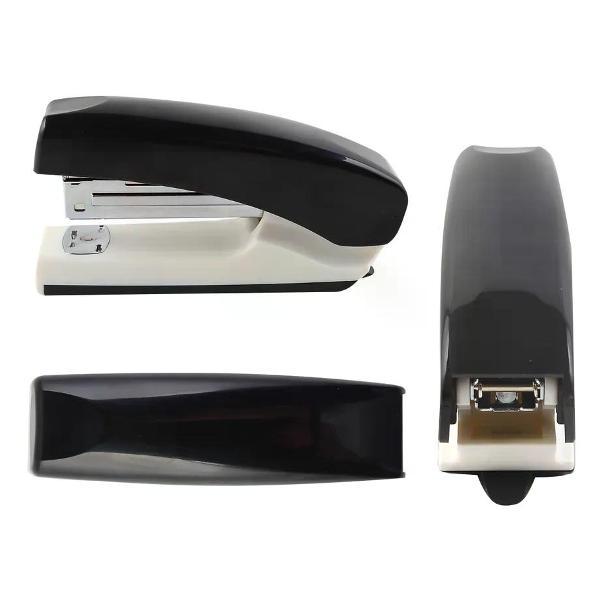 Степлер канцелярский незаменимый инструмент в офисе, учебном заведении и дома, который обеспечивает надежное скрепление документов, заметок и других бумажных материалов. Его компактный и эргономичный дизайн позволяет легко использовать степлер одной рукой, что делает его удобным в процессе работы. Современные модели степлеров могут скреплять до нескольких десятков листов за один раз, что значительно ускоряет выполнение задач, связанных с документацией. В нашем магазине доступны различные варианты степлеров. Кроме того, различные цвета и дизайны степлеров позволяют выбрать той, который лучше всего впишется в стиль рабочего пространства или станет ярким акцентом на столе. Степлер является не только практичным, но и эстетическим аксессуаром, который подчеркивает вашу организованность и заботу о деталях. Такой инструмент гарантирует, что важные документы всегда будут в порядке и готовыми к использованию, что особенно актуально в условиях динамичного рабочего процесса. Будь то небольшие заметки, отчеты или проекты, степлер станет верным помощником в создании аккуратного и структурированного документационного потока.Степлер, №24/6, №26/6, 20 листов, корпус пластиковый, антистеплер, держатель для телефона, цвет черный, KW-trio, 055G9BLACK. Торговая марка: KW-trio; Страна: Китай; Упаковка: 12; Сертификат: 3115.