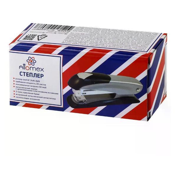 Степлер канцелярский незаменимый инструмент в офисе, учебном заведении и дома, который обеспечивает надежное скрепление документов, заметок и других бумажных материалов. Его компактный и эргономичный дизайн позволяет легко использовать степлер одной рукой, что делает его удобным в процессе работы. Современные модели степлеров могут скреплять до нескольких десятков листов за один раз, что значительно ускоряет выполнение задач, связанных с документацией. В нашем магазине доступны различные варианты степлеров. Кроме того, различные цвета и дизайны степлеров позволяют выбрать той, который лучше всего впишется в стиль рабочего пространства или станет ярким акцентом на столе. Степлер является не только практичным, но и эстетическим аксессуаром, который подчеркивает вашу организованность и заботу о деталях. Такой инструмент гарантирует, что важные документы всегда будут в порядке и готовыми к использованию, что особенно актуально в условиях динамичного рабочего процесса. Будь то небольшие заметки, отчеты или проекты, степлер станет верным помощником в создании аккуратного и структурированного документационного потока.Степлер, №24/6, 20 листов, корпус металлический, антистеплер, цвет серый, Attomex, 4142370. Торговая марка: Attomex; Страна: Китай; Упаковка: 12/120; Сертификат: 2063. Имеет два режима скрепления: постоянное и временное