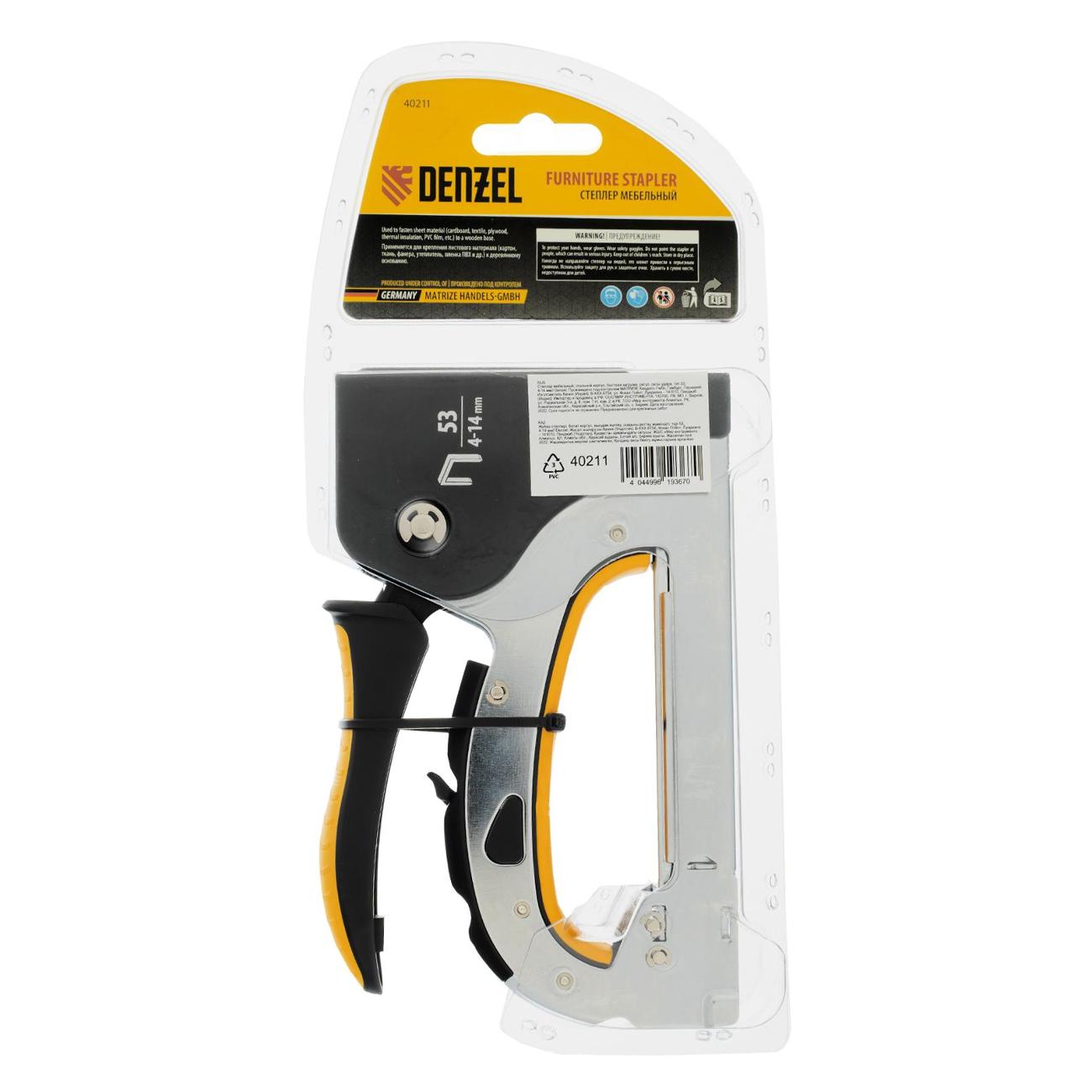 Вы можете купить Степлер строительный DENZEL 40211 в магазинах М.Видео по доступной цене. Степлер строительный DENZEL 40211: подробное описание, фото и отзывы реальных покупателей, характеристики, возможность скачать инструкции и подобрать аксессуары.