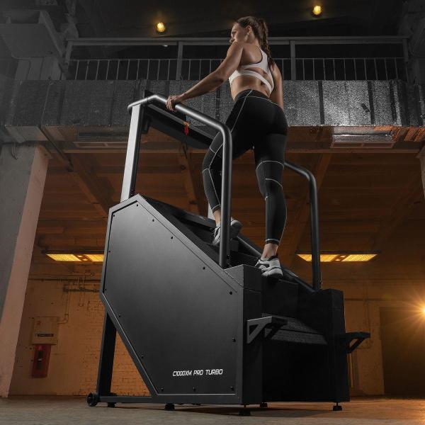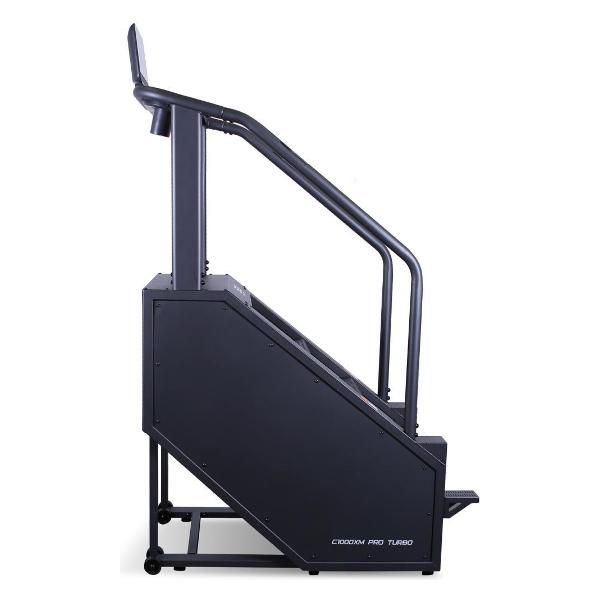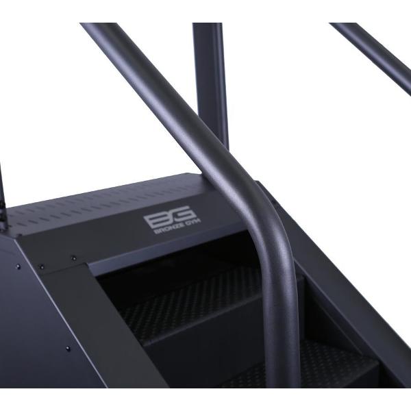 Степпер Bronze Gym C1000XM — это профессиональный тренажер для интенсивных тренировок, оснащенный двигателем мощность 2 л. с. Стальная износостойкая рама тренажера рассчитана на нагрузку до 180 кг. Ступени размером 550x240x180 мм выполнены из прочного пластика с антискользящим покрытием. Поверхность рабочей зоны наклоняется под углом до 38°. Диапазон шагов меняется в пределах от 14 до 140 в минуту.