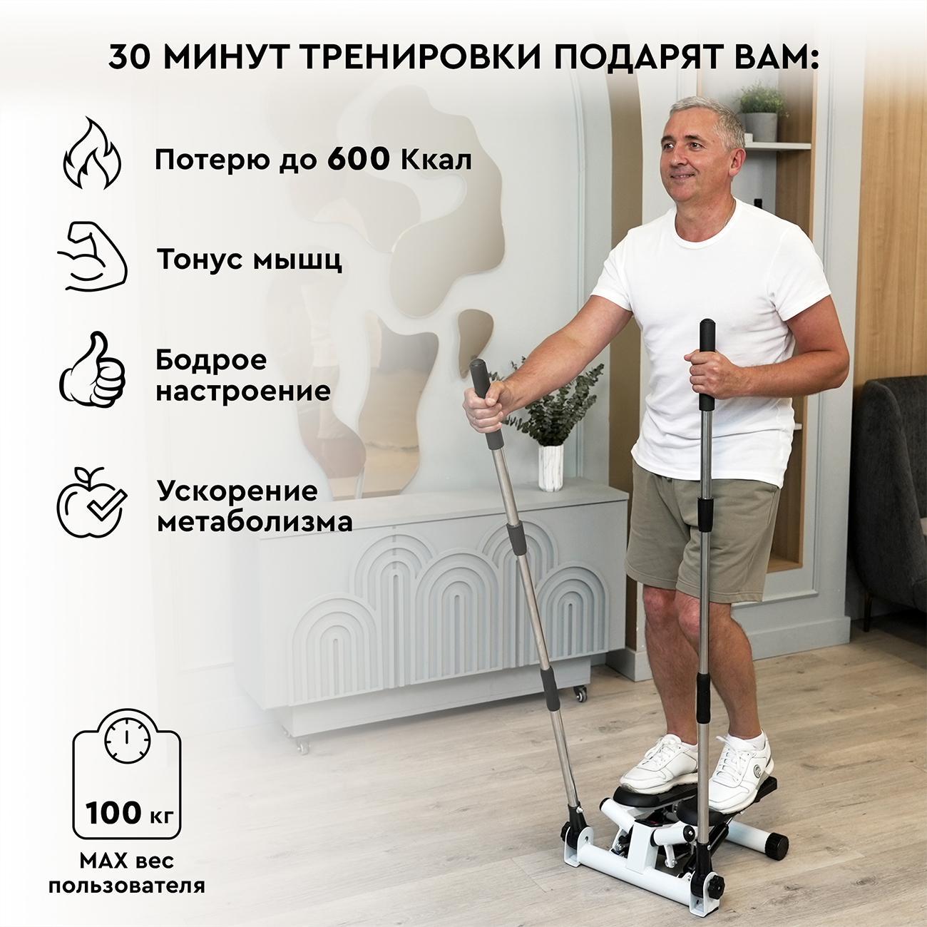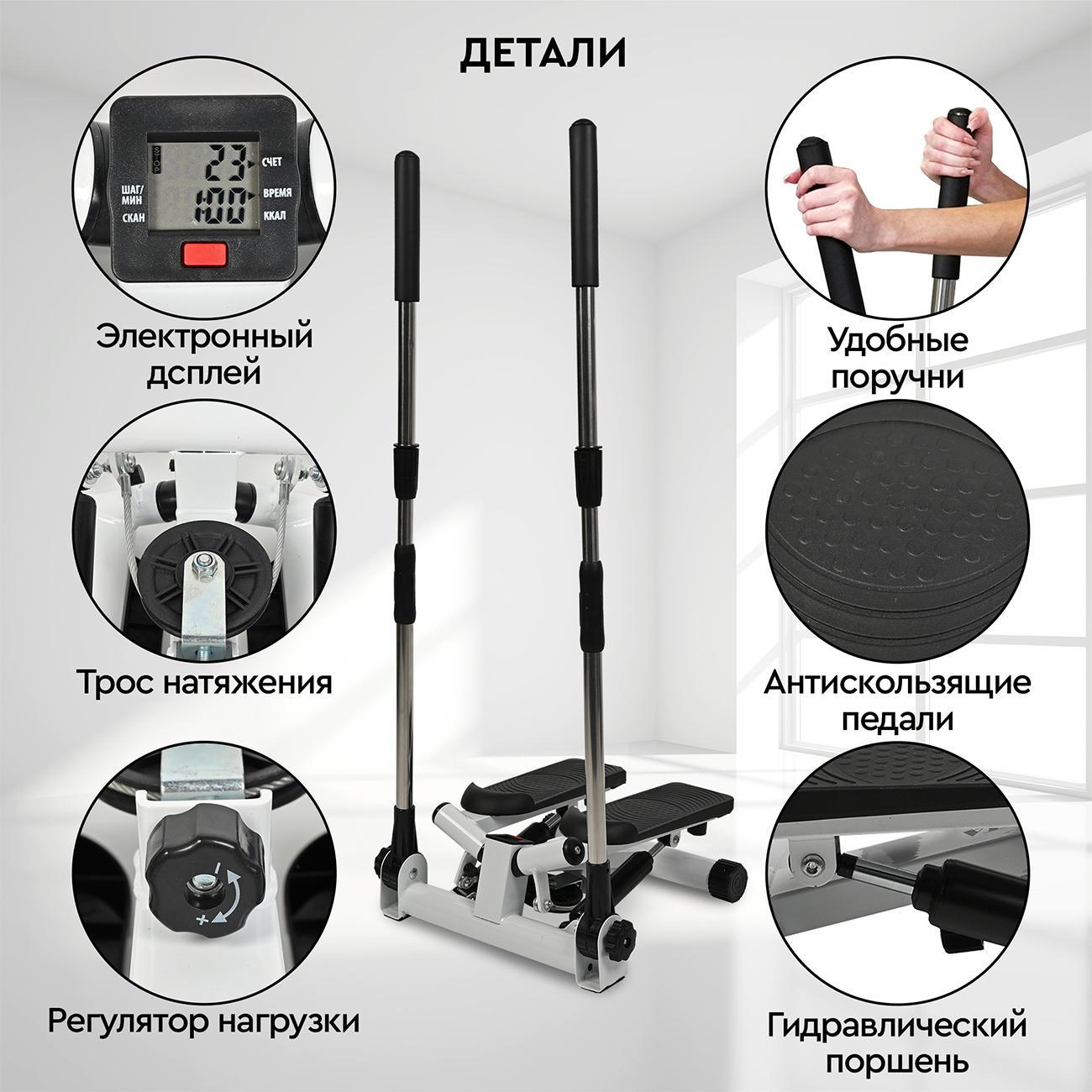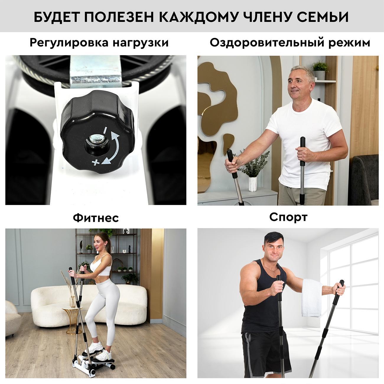 Предусмотрены прочные опоры, которые обеспечивают устойчивое положение степпера на любой горизонтальной поверхности. Специальный регулятор нагрузки поможет индивидуально настроить тренажер.