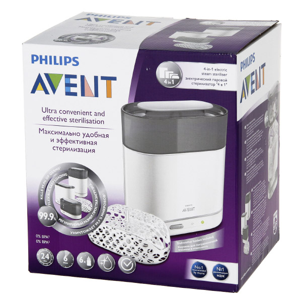 Характерной особенностью электрического парового стерилизатора Philips/Avent SCF286/03 является модульная конструкция, благодаря которой можно легко загрузить в него различные бутылочки и аксессуары, а затем так же легко вынуть.