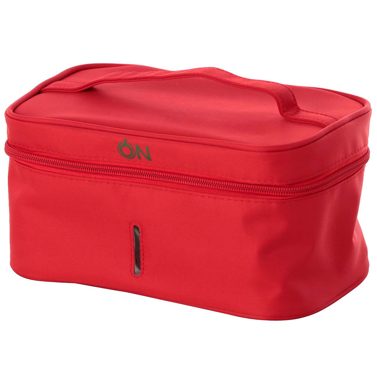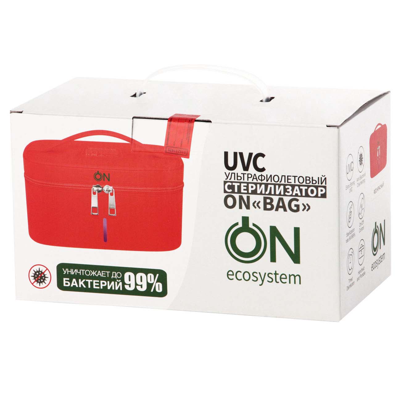 Стерилизатор ON Bag выполнен в виде сумки размером 25 х 14 х 14 см. Внешняя оболочка произведена из плотного нейлона, внутренняя — из алюминиевой фольги. Устройство предназначено для обработки различных небольших предметов: мобильной техники, часов, перчаток, ключей и прочего.