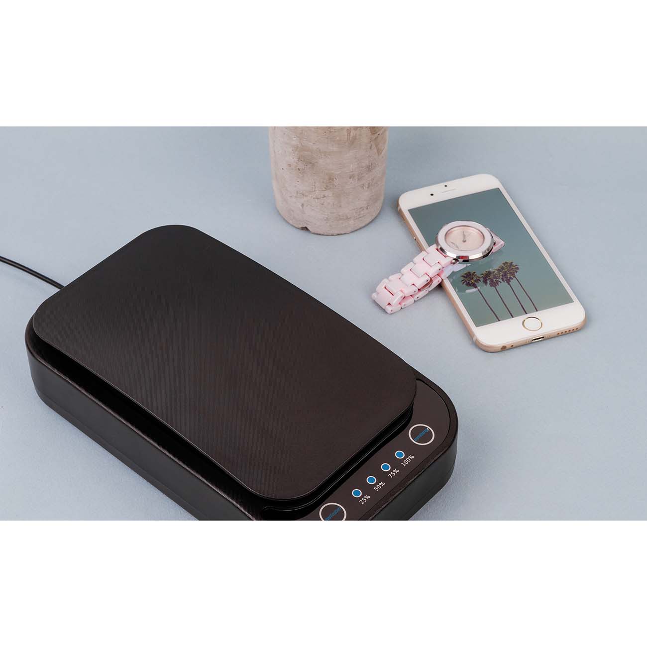 Хруста свежести после обработки не слышно). Но после серии обработок запах от кварцевания есть. Не уверена что обеззараживает на 360 градусов, лампы сбоку. Время обработки 10 мин. по умолчанию. О начале и конце обработки напоминает достаточно громкий женский голос на англ. яз. , меня это не беспокоит. До начала процедуры протираю всё спиртовой салфеткой. Аромамасла не пробовала, инструкцию не читала) заливать их не собираюсь, ибо не зачем. Не люфтит, хороший! пластик, плотный контакт при подключении (мне вилка не нужна). Внутри беспроводная зарядка и есть зарядка от юисби. Всё отлично. Товар этой фирмы уже есть, нареканий нет.