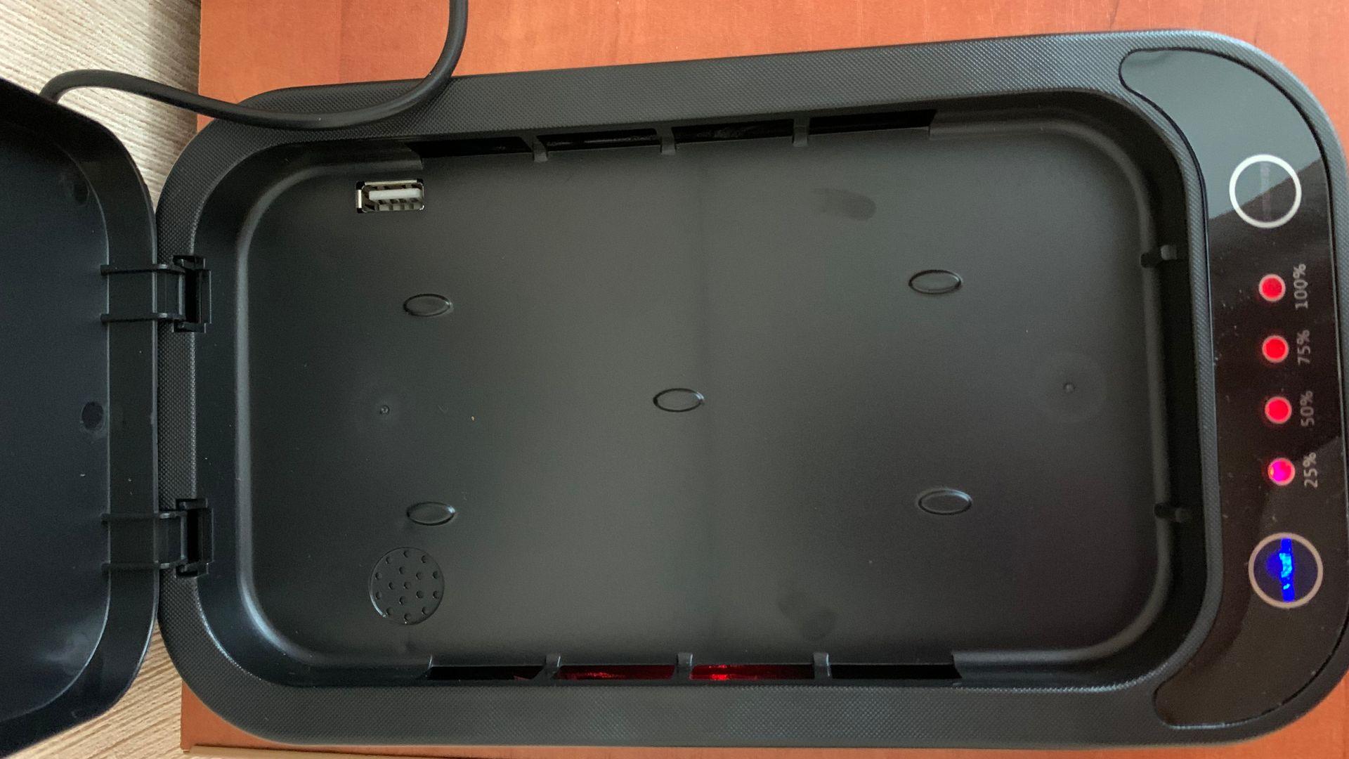 Отсутствие блока питания в комплекте (требование 5В, 2А). Ужасно громкий женский голос по английскому языку просто кричит о начале стерилизации и о ее окончании, никак не отключить, не уменьшить громкость, ни о каком звуковом сигнале и речи нет, только голос. Также не возможно выключить функцию беспроводной зарядки, она мне не нужна, я заряжаю только фирменными зарядными устройствами. При открытии крышки процесс не останавливается, как указано в инструкции, и это при том, что на сами лампы смотреть нельзя, как взять телефон? Только на ощупь. Светодиоды очень яркие, само устройство не переходит в режим сна, вот стоит он целый день или ночь и постоянно переливается разными огнями, бесит. Постоянно включать и отключать его из розетки не вариант. Пришел с улицы, положил телефон.