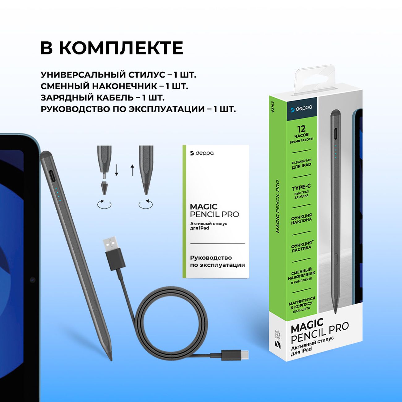 Вы можете купить Стилус Deppa Magic Pro для Apple iPad (63163), графитовый в магазинах М.Видео по доступной цене. Стилус Deppa Magic Pro для Apple iPad (63163), графитовый: подробное описание, фото и отзывы реальных покупателей, характеристики, возможность скачать инструкции и подобрать аксессуары.