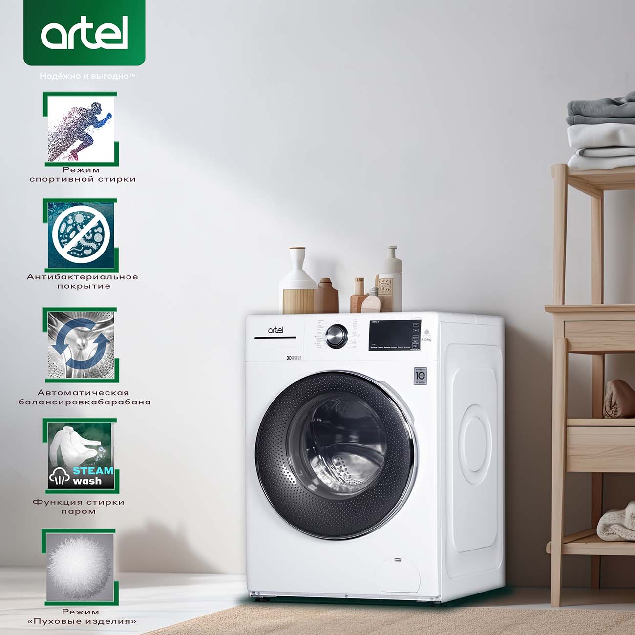 Что касается уровня шума, тут тоже приятно была удивлена- не прыгает, барабан очень тихий даже при отжиме, так что я её вообще практически не слышу. Можно и пуховое одеяло или пуховик постирать, и самые деликатные ткани. Ещё нравится режим замачивания, можно вообще руками ничего не стирать как раньше. В общем, полностью советую к покупке!