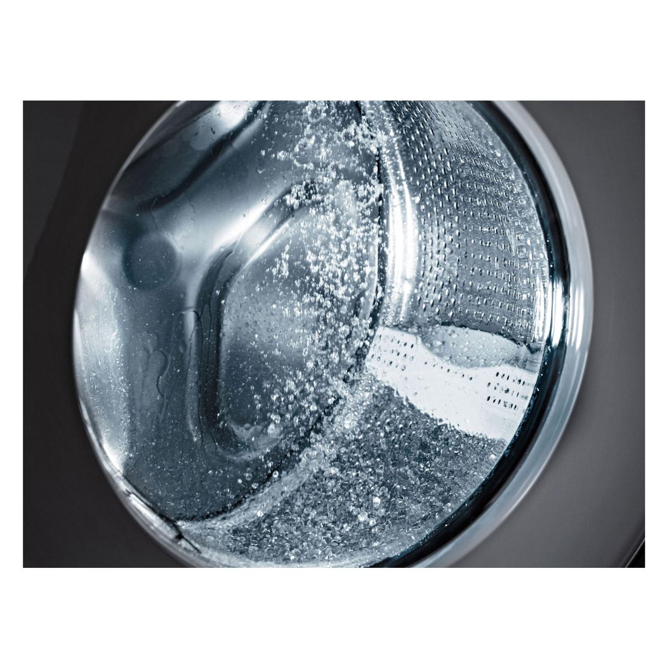 Благодаря функции «Автовзвешивание» прибор сам определит, сколько нужно набрать воды для конкретного количества и вида белья. Заданные настройки отображаются на электронном дисплее. В целях безопасности предусмотрена блокировка от детей. Есть система контроля подачи и слива воды, предотвращающая протечки. Барабан изготовлен из устойчивой к коррозии стали. Дверца открывается налево.