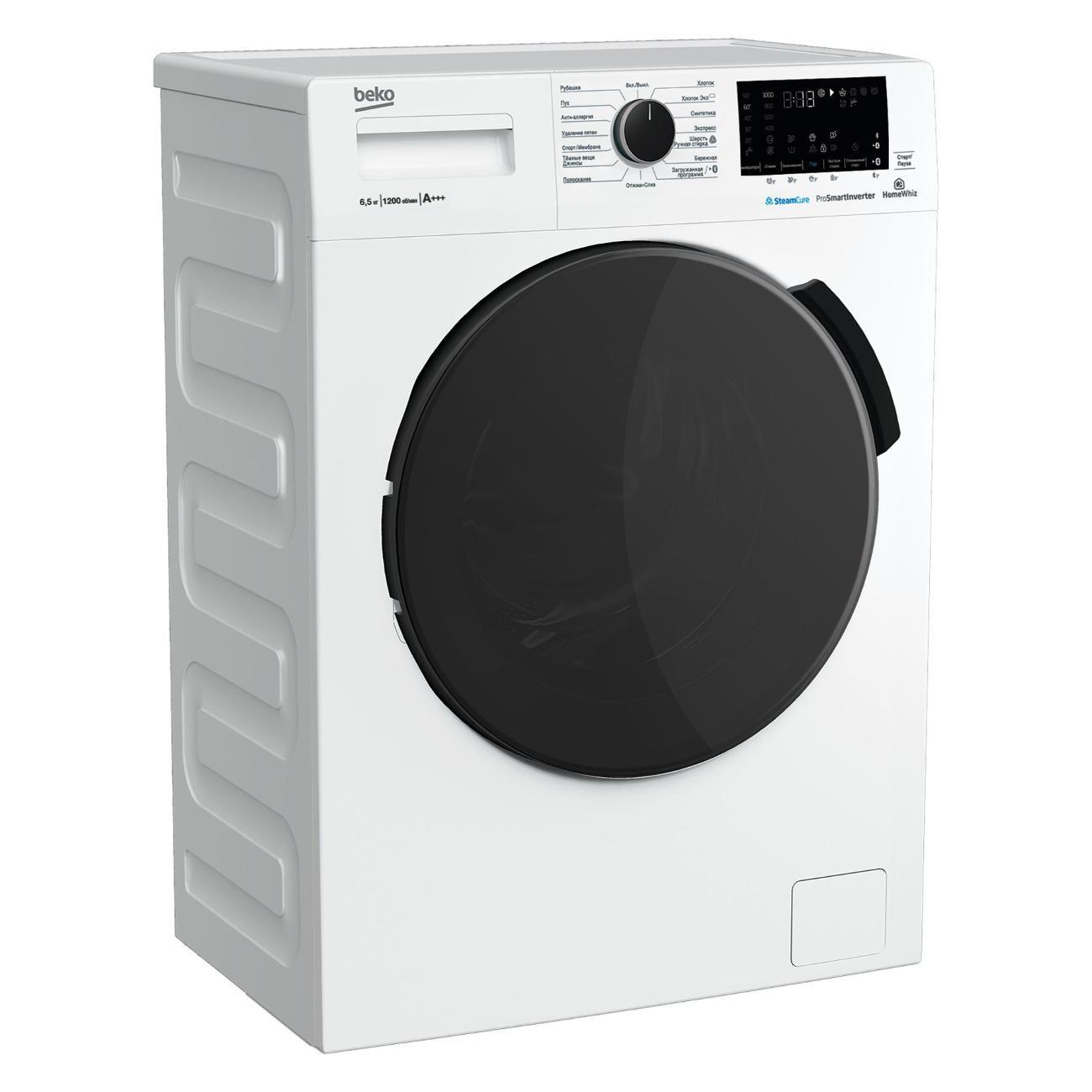 Стиральная машина Beko WSPE6H616W в корпусе белого цвета позволяет за один раз постирать до 6,5 кг белья в зависимости от типа ткани. В прибор заложены 15 программ, включая «Джинсы», «Спорт», «Обработка паром». Ускоренный режим длится всего 14 минут, подходит для слабозагрязненных вещей. Максимальная скорость отжима составляет 1200 об/мин.