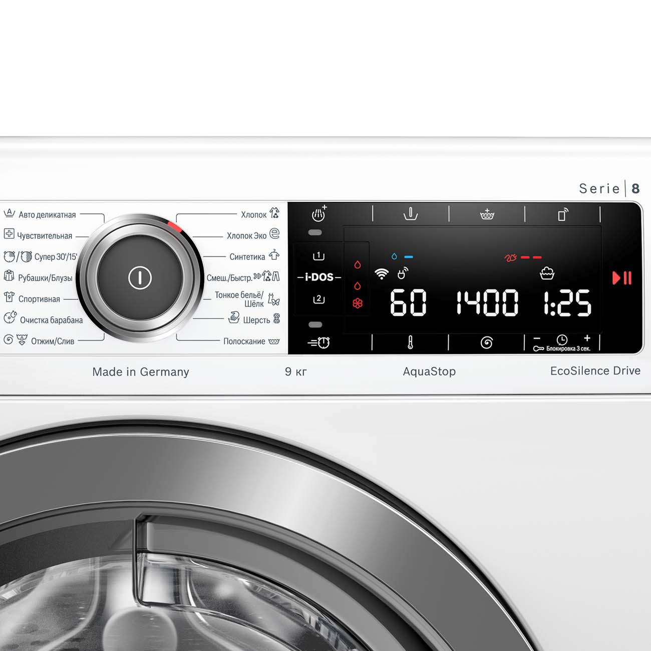 Стиральная машина Bosch Serie 8 WAV28GH1OE – это внушительная загрузка 9 кг, возможность удалённого управления со смартфона через приложение Home Connect, надёжный и тихий инверторный мотор EcoSilence Drive и современные технологии для идеального результата и рационального расходования ресурсов.