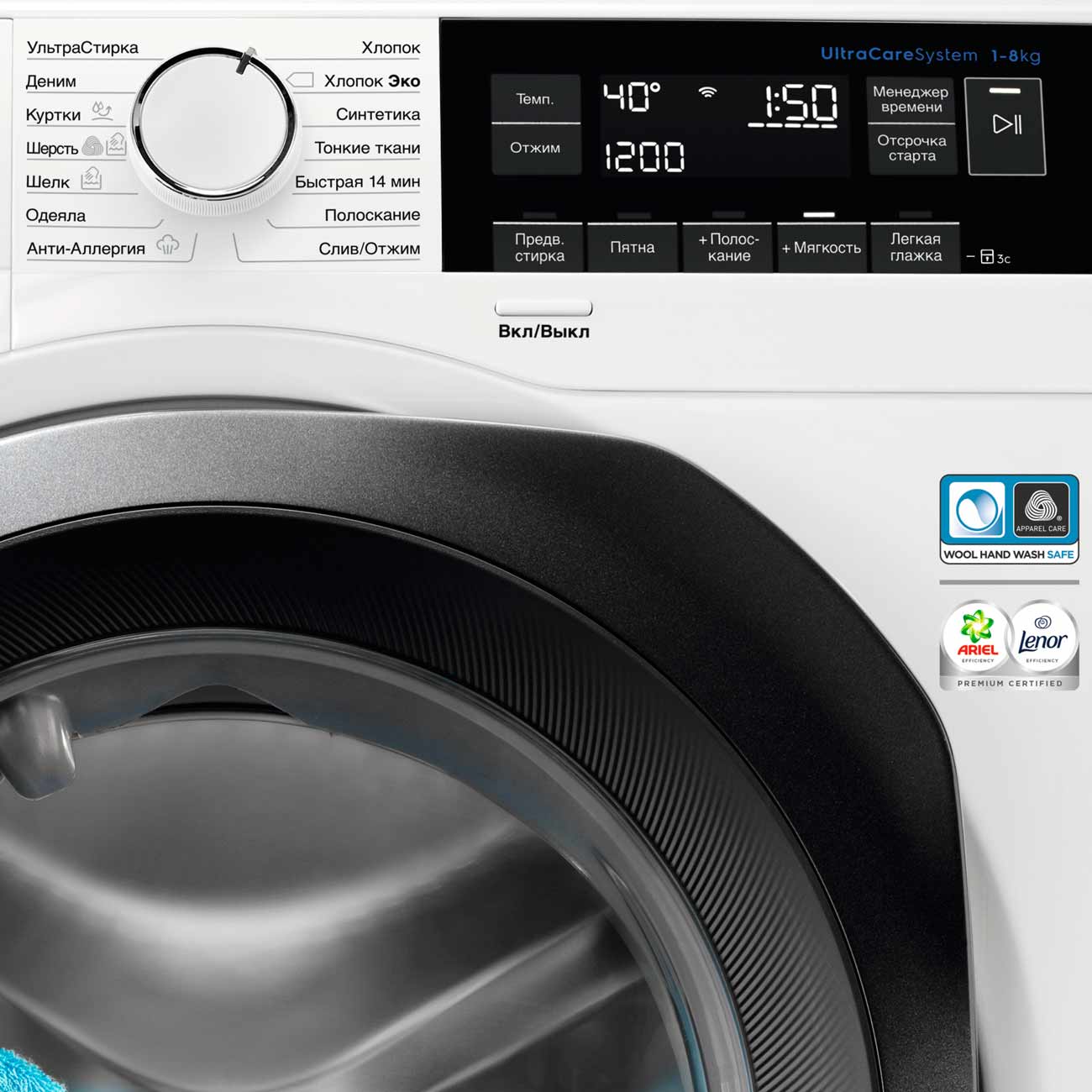 Машина оптимизирует цикл стирки по весу автоматически. То есть в прямом смысле экономит время и энергию.