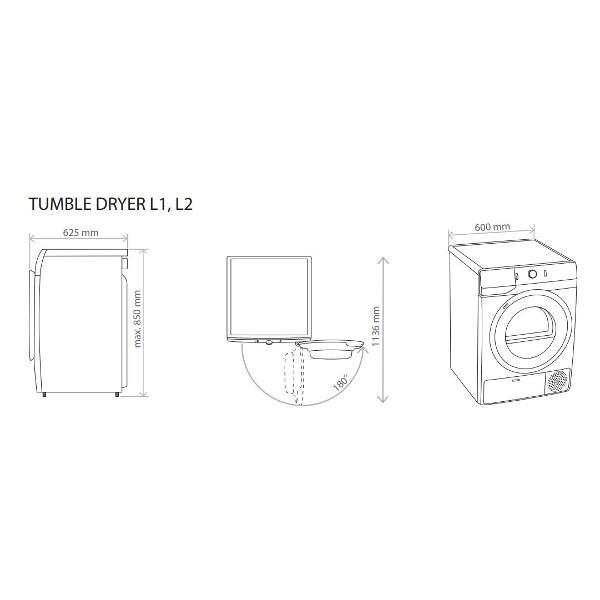 Потребляемая мощность составляет 1900 Вт, машина питается от сети 220-240 В с частотой тока 50-60 Гц. Встроен инверторный двигатель. Максимальный уровень шума при стирке не превышает 53 дБ, при отжиме — 72 дБ. Прибор относится к А-классу эффективности стирки, к В-классу эффективности отжима, к классу энергоэффективности А+++. Расход воды за цикл стирки — 54 л.