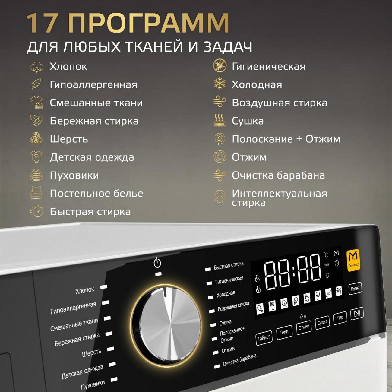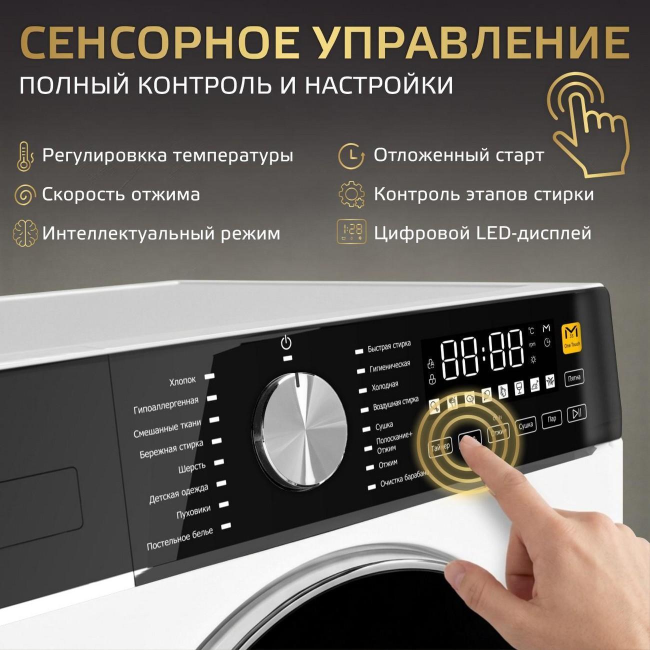 Отдельный плюс — инверторный мотор: машина работает очень тихо, так что можно спокойно стирать по ночам, не беспокоя домочадцев. В целом, отличная модель с продуманным набором функций!