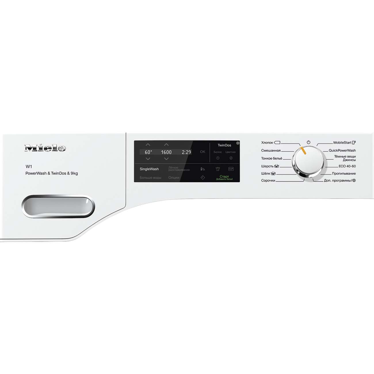 Панель управления Miele WWI860WPS состоит из модуля DirectSensor с сенсорными переключателями и четырехсегментным жидкокристаллическим дисплеем, включает механический переключатель выбора режимов. Мобильное приложение Miele Mobile позволяет управлять устройством со смартфона. Машина поддерживает 20 программ стирки, включая «Сорочки», «Шелк», «Верхняя одежда», «Экспресс 20», «Гардины», «Спортивная одежда», «Спортивная обувь». Освежить один предмет одежды поможет режим SingleWash. Гигиеническая стирка защищает от аллергии.