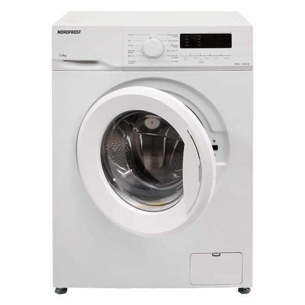 Стиральная машина Nordfrost WM2 7100 W, белая — модель с фронтальной загрузкой, рассчитанная на 7 кг белья. В устройство заложены 12 программ, среди которых режимы для хлопка, синтетики, детских вещей, смешанного белья и другие. При необходимости только освежить слабозагрязненный текстиль поможет ускоренный цикл, который длится всего 15 минут.