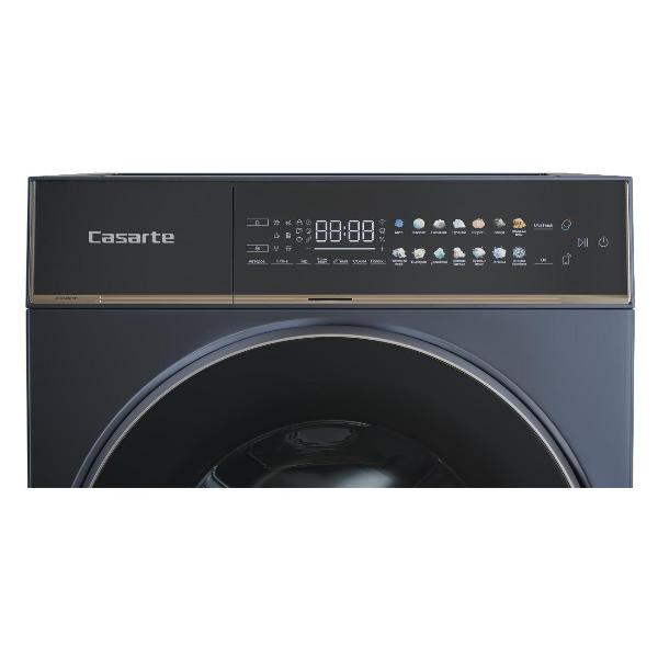 Стиральная машина премиум-класса Casarte CASW12CL7CU вмещает до 12 кг белья. Модель привлекает внимание необычным исполнением: на корпусе сине-зеленого цвета выделяются затемненная дверца люка и черная сенсорная панель управления.