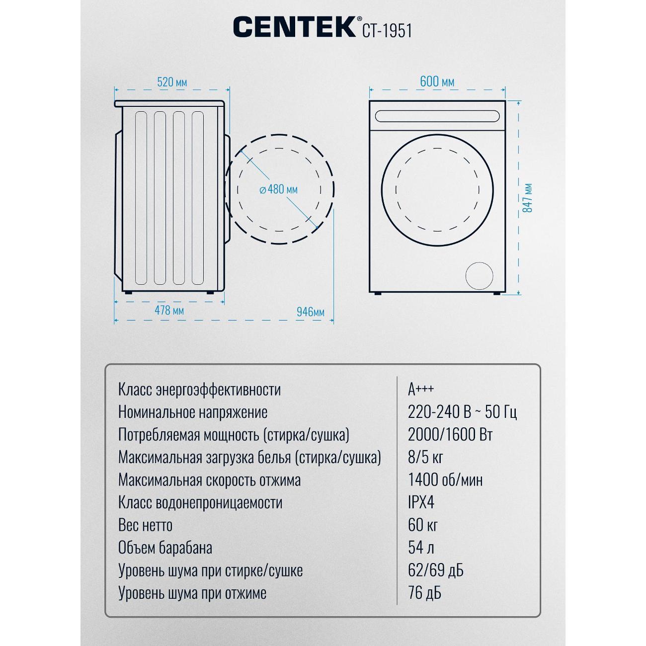 Centek CT‑1951 — это стиральная машина, которая: