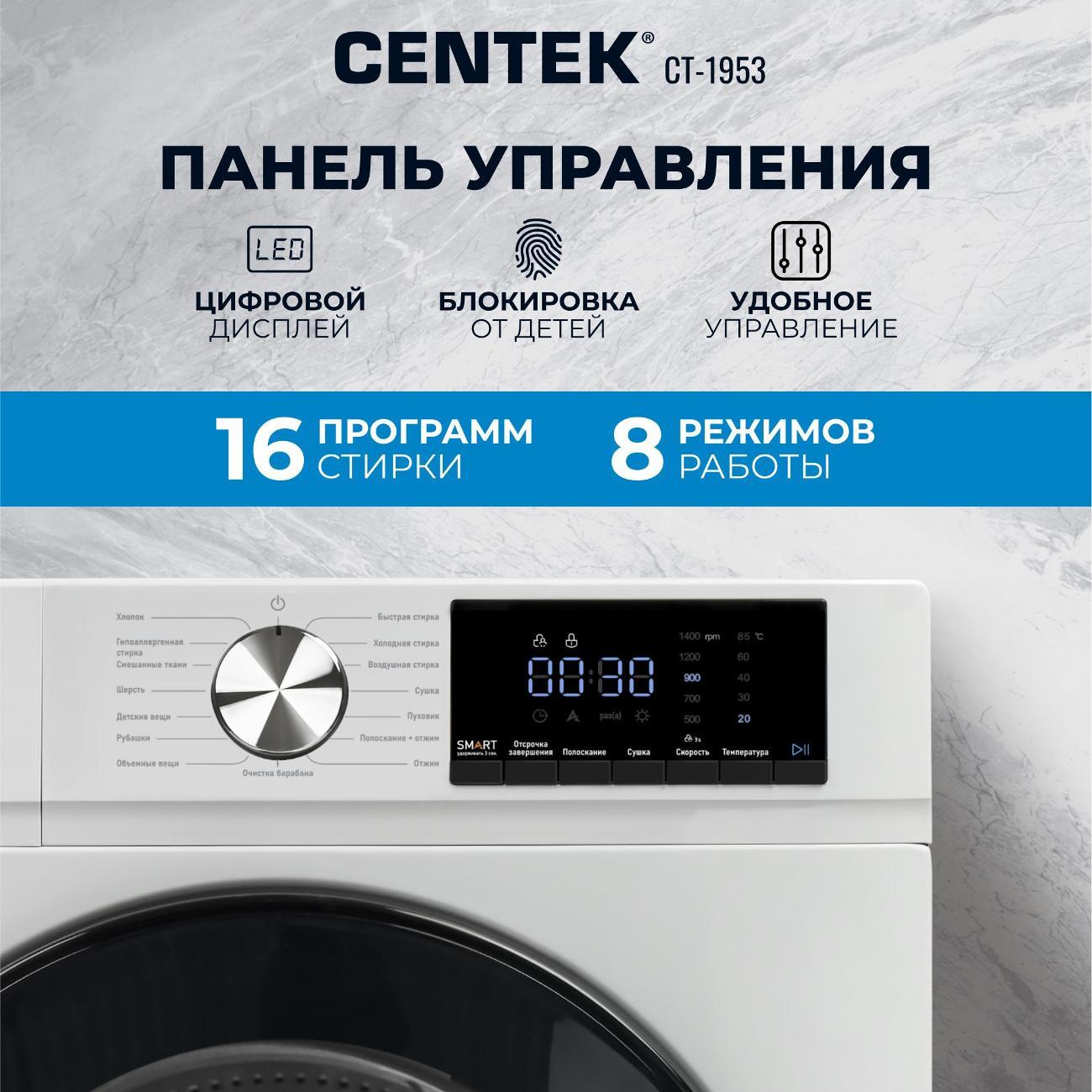 Вы можете купить Стиральная машина с сушкой Centek CT-1953 в магазинах М.Видео по доступной цене. Стиральная машина с сушкой Centek CT-1953: подробное описание, фото и отзывы реальных покупателей, характеристики, возможность скачать инструкции и подобрать аксессуары.