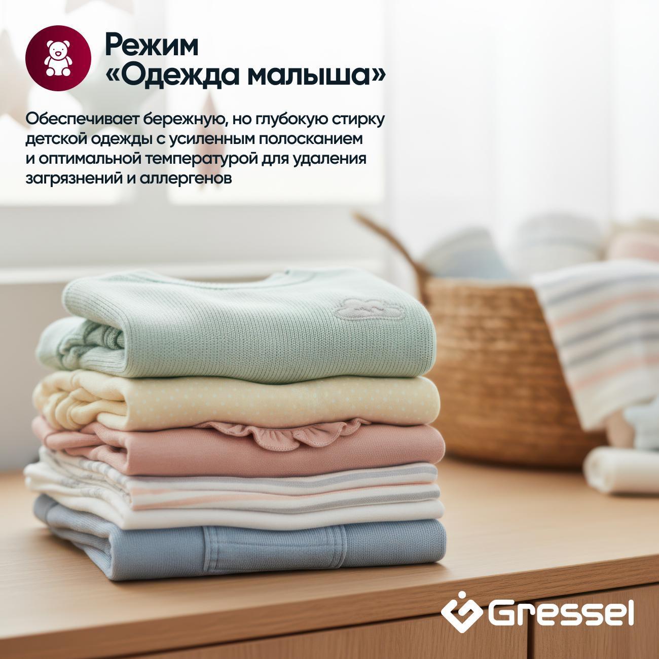 11 программ покрывают любые задачи: от быстрой стирки и деликатной обработки шерсти до режимов Allergy care и Baby care, которые бережно удаляют аллергены. Функции G-Smart, Air Wash, дозагрузка белья и отложенный старт добавляют гибкости в использовании. Дополнительные опции — блокировка от детей, индикация времени и таймер — делают процесс максимально удобным. Модель UGS704 сочетает передовые технологии, элегантный дизайн и надёжность в компактном корпусе.