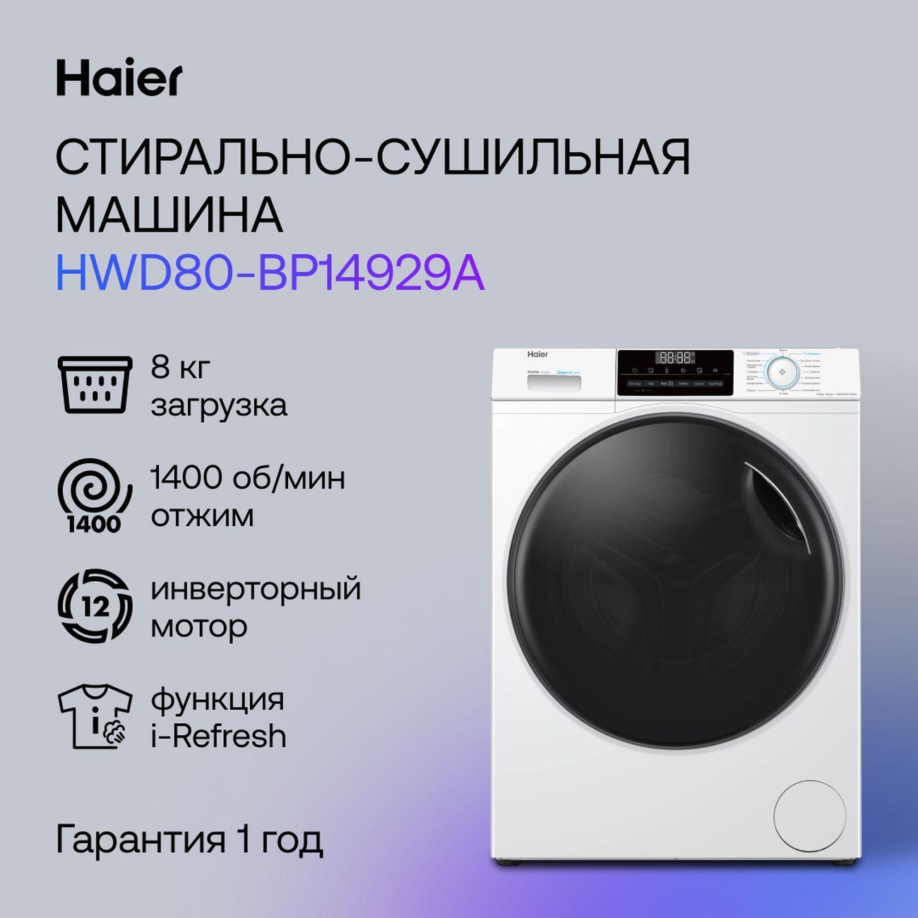 Вы можете купить Стиральная машина с сушкой Haier HWD80-BP14929A в магазинах М.Видео по доступной цене. Стиральная машина с сушкой Haier HWD80-BP14929A: подробное описание, фото и отзывы реальных покупателей, характеристики, возможность скачать инструкции и подобрать аксессуары.