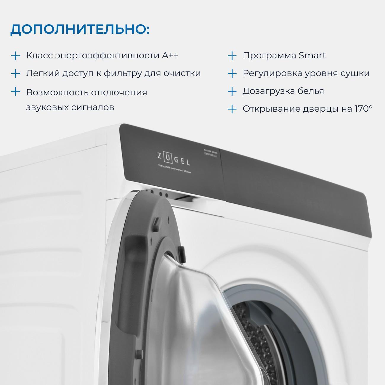 Вы можете купить Стиральная машина с сушкой ZUGEL ZWDF128141I в магазинах М.Видео по доступной цене. Стиральная машина с сушкой ZUGEL ZWDF128141I: подробное описание, фото и отзывы реальных покупателей, характеристики, возможность скачать инструкции и подобрать аксессуары.