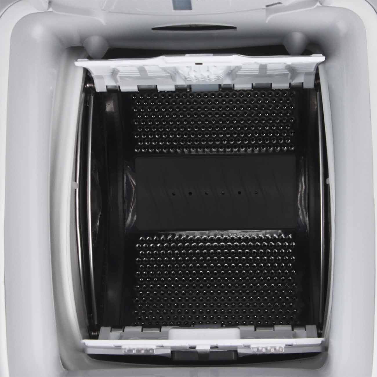 Створки барабана открываются плавно и расположены прямо под крышкой, что упростит закладку и выемку белья. Управление простое и интуитивно понятное: выбор температуры, скорости отжима и других настроек сопровождается световой индикацией. Установки таймера отложенного старта отображает цифровой дисплей.