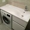 Искал узкую стиральную машину для установки на кухне под стандартную столешницу 600мм. С закрыванием фасада проблем нет. Лотку для порошка совершенно ничего не мешает можно спокойно им пользоваться без всяких вырезов в столешнице.