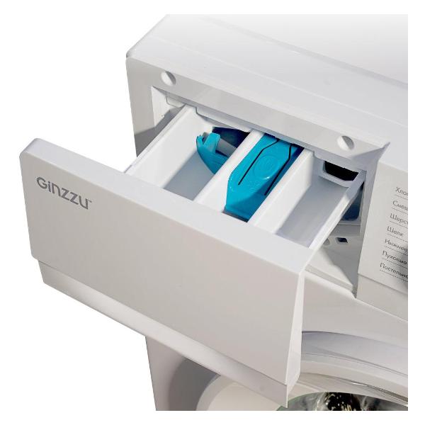 Узкая стиральная машина Ginzzu CMI-920A с корпусом белого цвета и мотором инверторного типа оснащена барабаном 54 л, в который поместится до 9 кг белья. Можно дополнительно класть вещи в бак после начала стирки. Система управления — электромеханическая, важная информация выводится на символьный LED-дисплей.