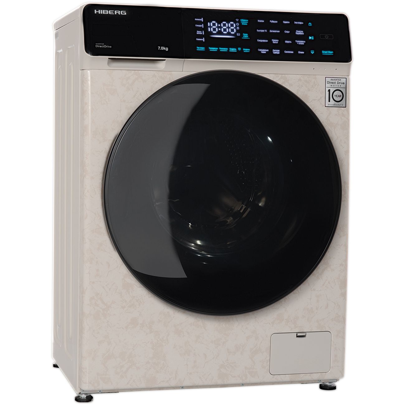 Узкая стиральная машина Hiberg i-DDQ9-712 Ym бежевого цвета оснащена барабаном из нержавеющей стали, вмещающим максимум 7 кг белья. Диаметр дверцы — 52 см. Максимальный угол открывания люка — 150°. Загрузка фронтальная. Модель оснащена инверторным двигателем с прямым приводом, который не нуждается в техническом обслуживании и смазке. На фронтальной панели располагается LED-дисплей с индикацией оставшегося времени стирки и другой необходимой информацией. Управление сенсорное.