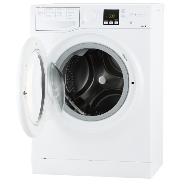 Несмотря на свою небольшую глубину, всего 42,5 см, модель имеет вместительный барабан на 6 кг, которого будет вполне достаточно семье из трёх-четырёх человек. Вам не придётся закладывать внутрь по одной наволочке, т. к. диаметр люка (34 см) позволяет без усилий положить сразу большой объём белья. Дверца открывается на 180 градусов, так что вы не заденете её, находясь возле машинки.