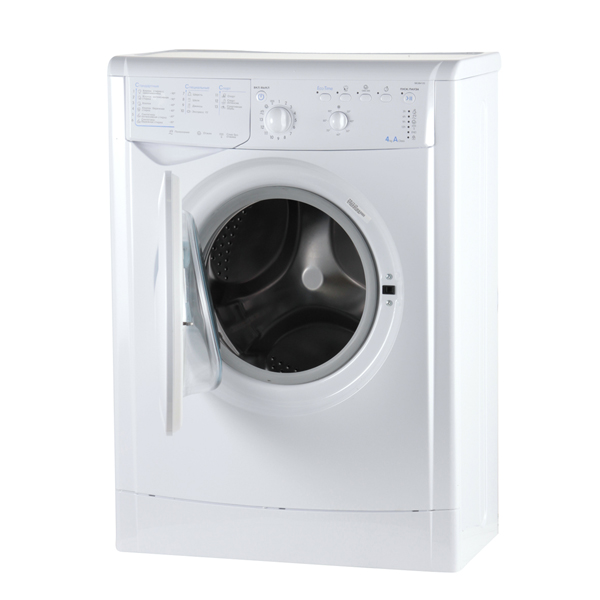 Узкая стиральная машина Indesit IWUB 4105 (CIS), белая — очень компактная модель глубиной всего 33 см. Высота и ширина стандартные: 85 см и 60 см соответственно. За раз можно загрузить до 4 кг белья. Мощность подключения составляет 1850 Вт, энергопотребление за цикл — 0,79 кВт*ч, что соответствует классу энергоэффективности A. Расход воды — 39 л. Установлен стандартный двигатель, уровень шума при стирке достигает 59 дБ, при отжиме — 76 дБ.