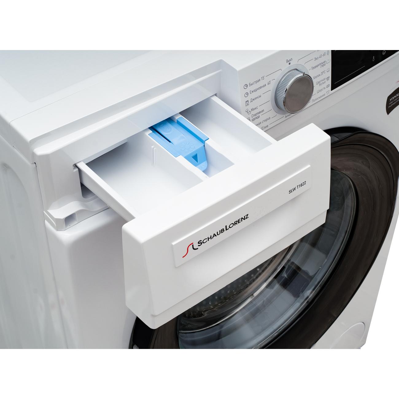 Узкая стиральная машина Schaub Lorenz SLW T1622 в белом цветовом исполнении вмещает 41 л и 6 кг белья. Модель мощностью 1850 Вт относится к классу энергоэффективности А+++ и потребляет за цикл 0,86 кВт*ч. В основе прибора находится инверторный мотор, зарекомендовавший себя как износостойкий и надежный. Среди встроенных режимов работы предусмотрена программа «Антиаллергия», особенно актуальная для детских вещей.