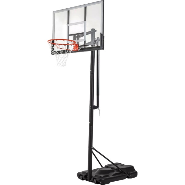 Баскетбольная стойка Dfc Stand48P предназначена для игр внутри спортивного зала и на открытом воздухе. Чтобы основание модели было устойчиво, его следует заполнить водой или засыпать песком перед эксплуатацией. Щит изготовлен из поликарбоната, который характеризуется высокой прочностью. Изделие компактного размера — 120 x 80 см. С помощью телескопического механизма стойку можно регулировать по высоте от 245 до 305 см. Диаметр кольца — 45 см.
