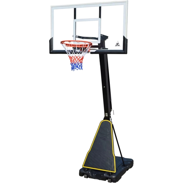Баскетбольная стойка Dfc Stand54P2 предназначена для игр внутри спортивного зала и на открытом воздухе. Чтобы основание модели было устойчиво, его следует заполнить водой или засыпать песком перед эксплуатацией. Щит изготовлен из поликарбоната, который характеризуется высокой прочностью. Изделие компактного размера — 136 x 80 см. С помощью телескопического механизма стойку можно регулировать по высоте от 245 до 305 см. Диаметр кольца — 45 см.