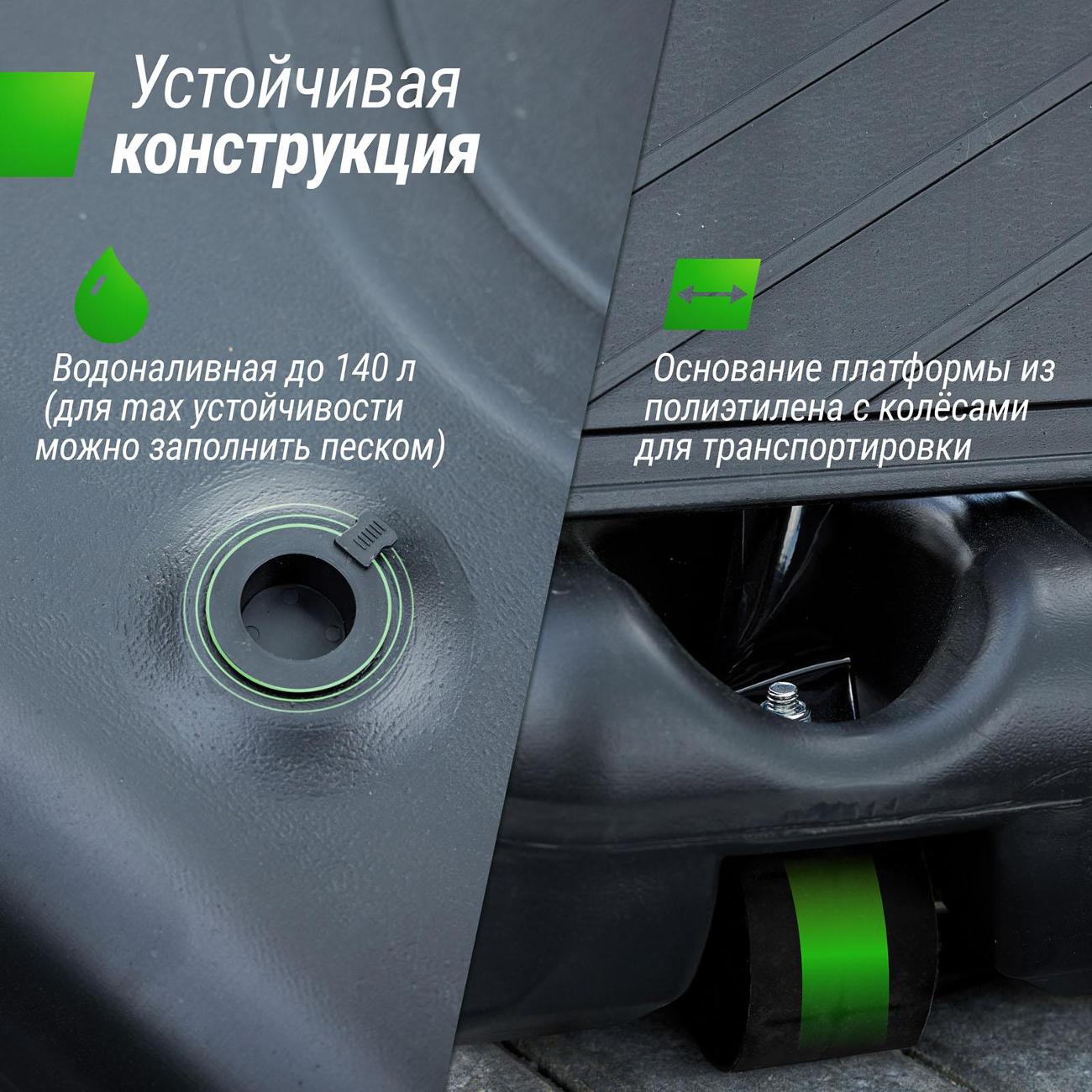 Водоналивную платформу можно заполнить песком для большей устойчивости. Простая сборка и возможность перемещения стойки на двух колесах, обеспечат комфорт даже при подготовке к игре.