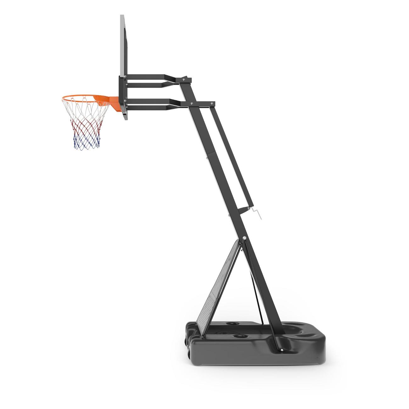 Такие высококачественные материалы уличной баскетбольной стойки 305 см как всепогодная нейлоновая сетка, щит из поликарбоната с защитной пленкой толщиной 3 мм, стальные трубы стойки и водоналивное основание платформы до 180 л гарантируют долгий срок службы, устойчивость к погодным условиям и главное - безопасность. Водоналивную платформу можно заполнить песком для большей устойчивости. Простая сборка и возможность перемещения стойки на двух колесах, обеспечат комфорт даже при подготовке к игре.